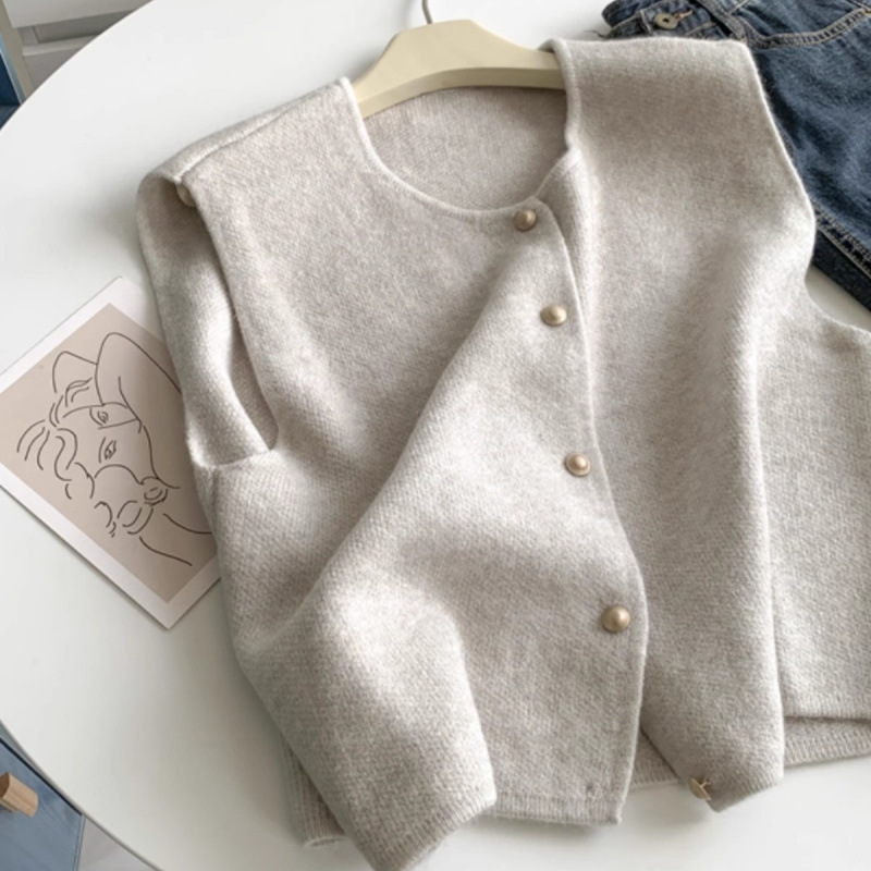 NUNBAI 부드러운 싱글 브레스트 골드 버튼 우아한 올 매치 니트 조끼 여자 가을 겨울 내벽 착용