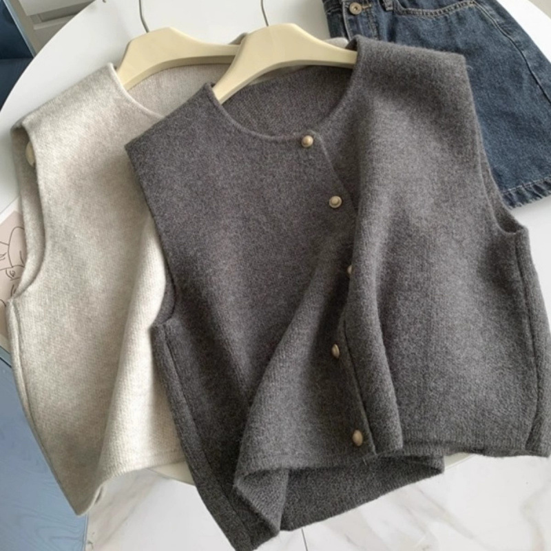 NUNBAI 부드러운 싱글 브레스트 골드 버튼 우아한 올 매치 니트 조끼 여자 가을 겨울 내벽 착용스토어 가기