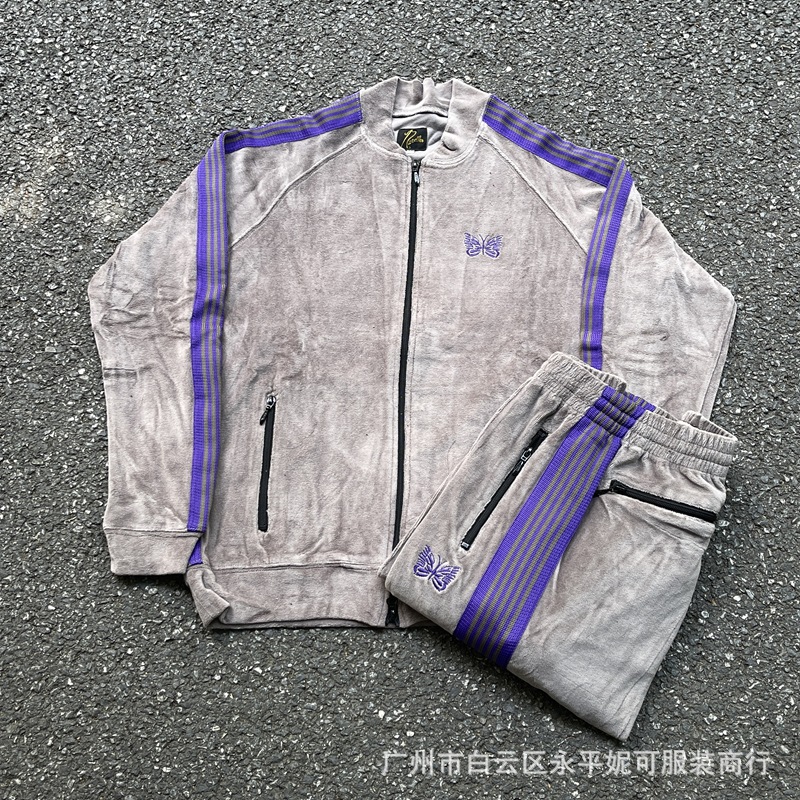 바늘 운동복 나비 벨벳 카디건 빈티지 리본 지퍼 재킷 스포츠 세트스토어 가기