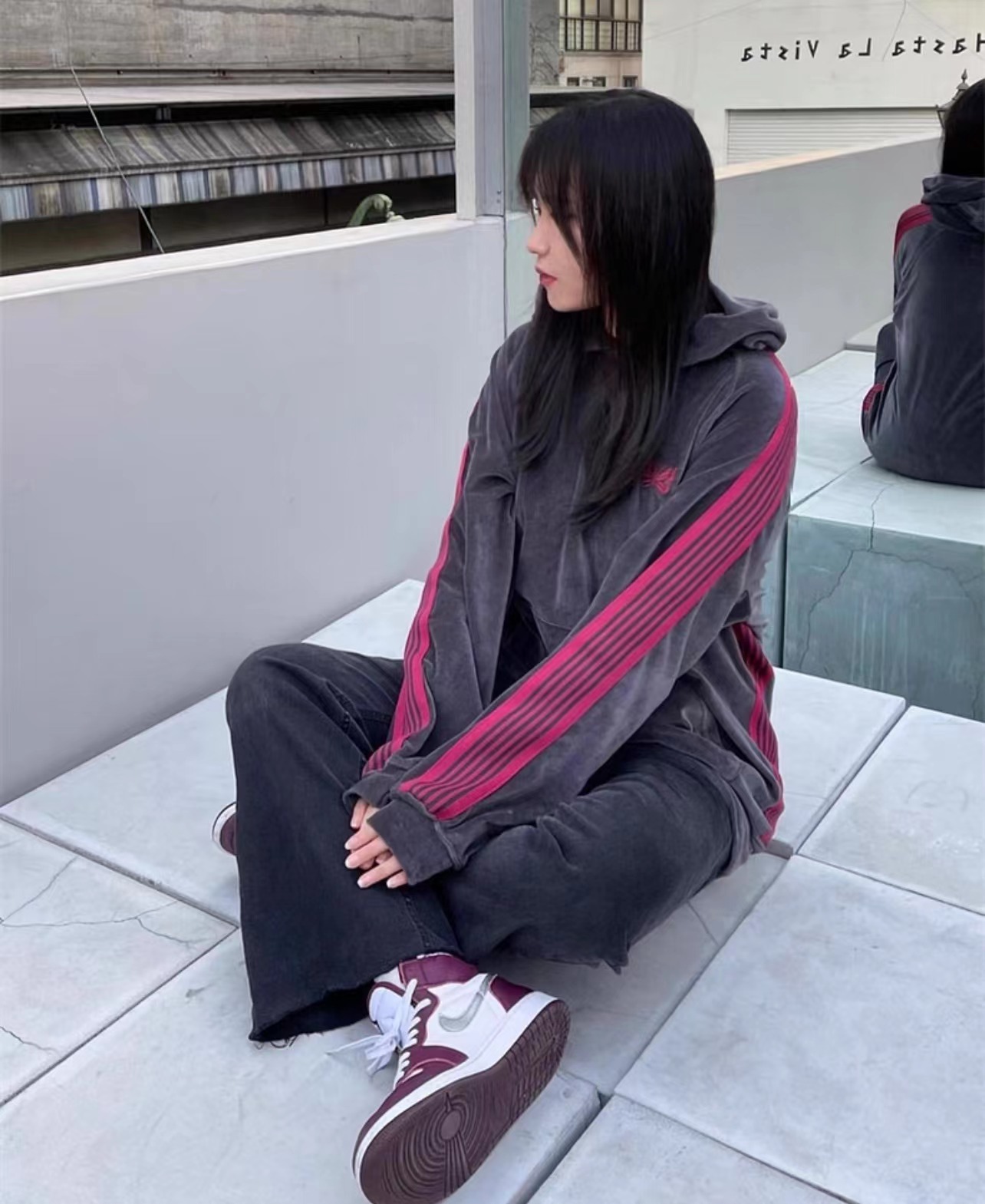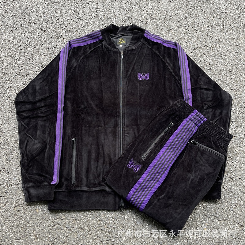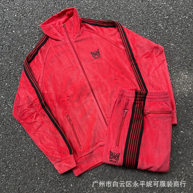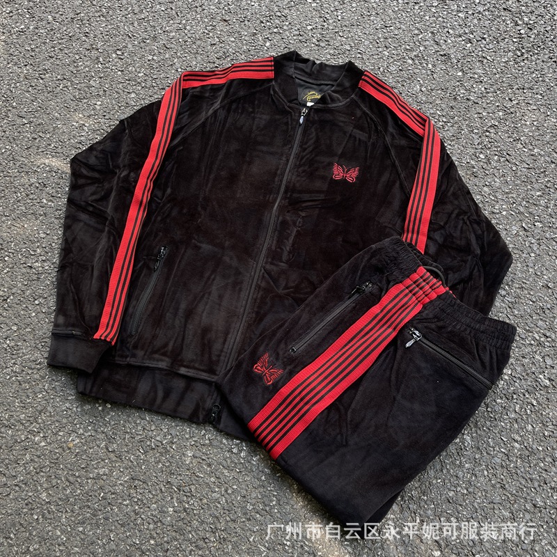 바늘 운동복 나비 벨벳 카디건 빈티지 리본 지퍼 재킷 스포츠 세트