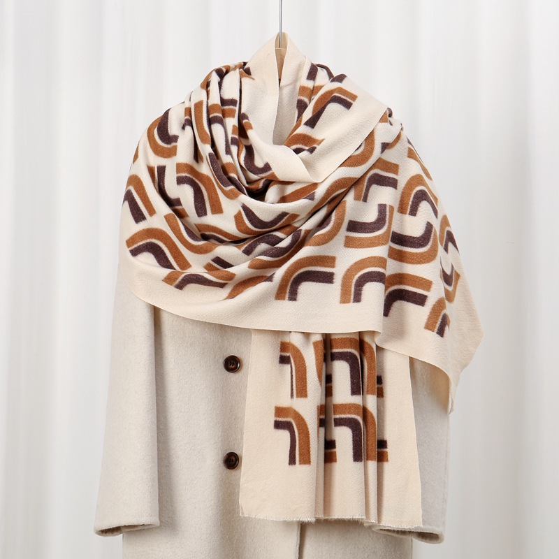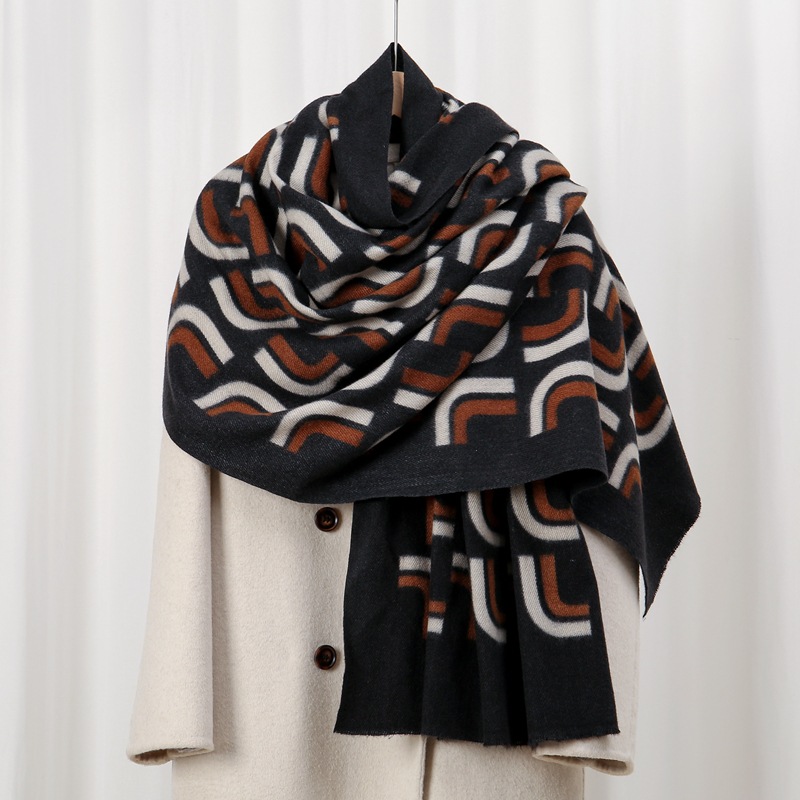 대외 무역 국경 간 라이브 방송 새로운 가을 및 겨울 피부 친화적 인 따뜻한 가짜 캐시미어 인쇄 스카프 기하학 더블 J 단순 올 매치 목도리스토어 가기