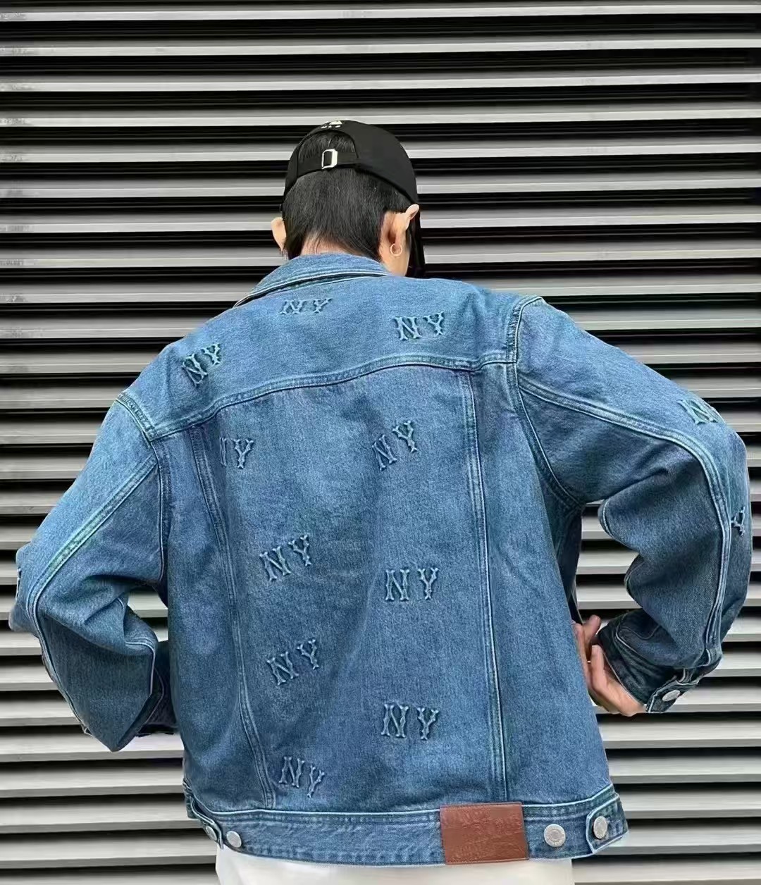 MLB 하이 버전 커플 3 차원 올드 플라워 빈티지 올 매치 캐주얼 데님 재킷 코트 24 가을 남성과 여성을위한 새로운 도착