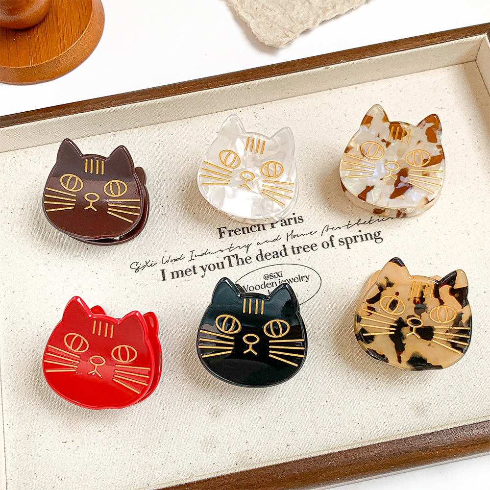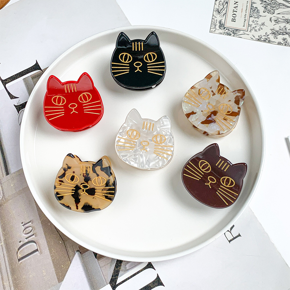 일본 머리핀 귀여운 고양이 잡아 클립 아세트산 그랩 클립 골드 금속 클립 합금 머리 잡아 도매 어린이 헤어 액세서리