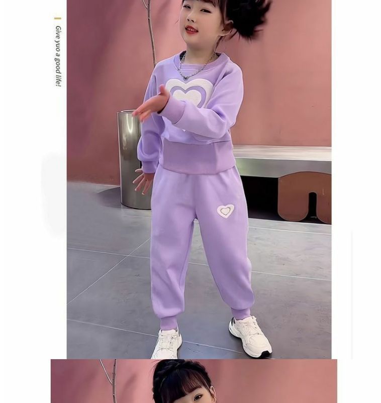 소녀 세트 2024 새로운 봄, 가을, 겨울 사랑 소녀 큰 어린이 그물 축하 스웨트 셔츠 스포츠 투피스 웨스턴 스타일스토어 가기