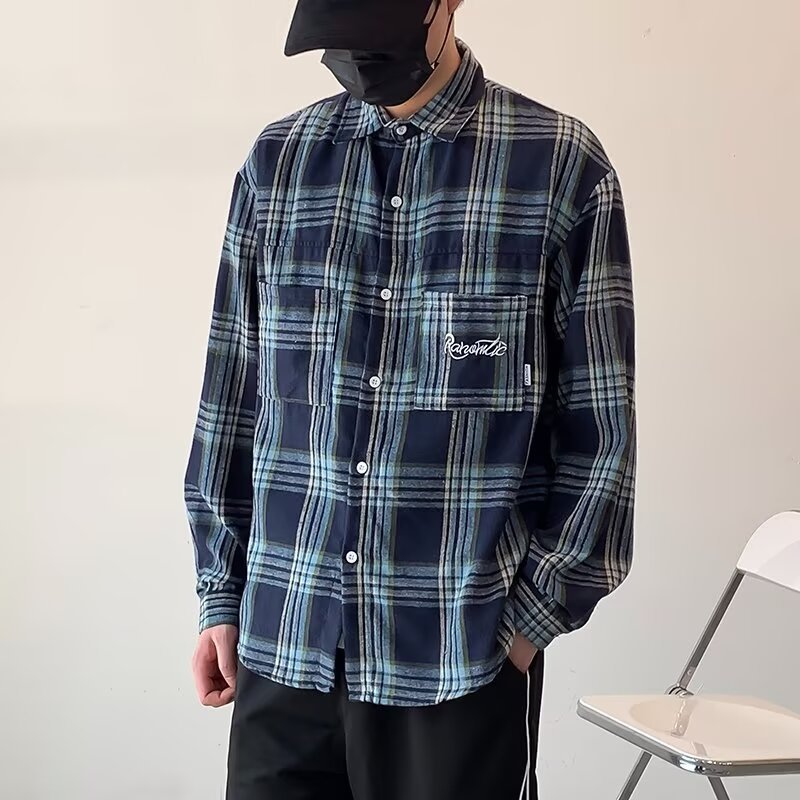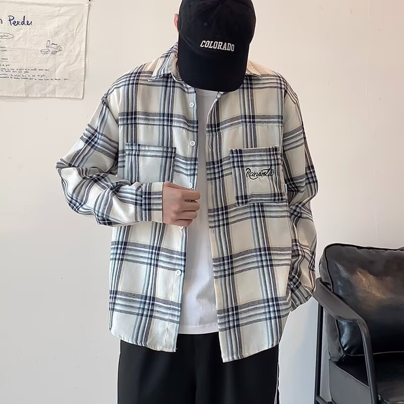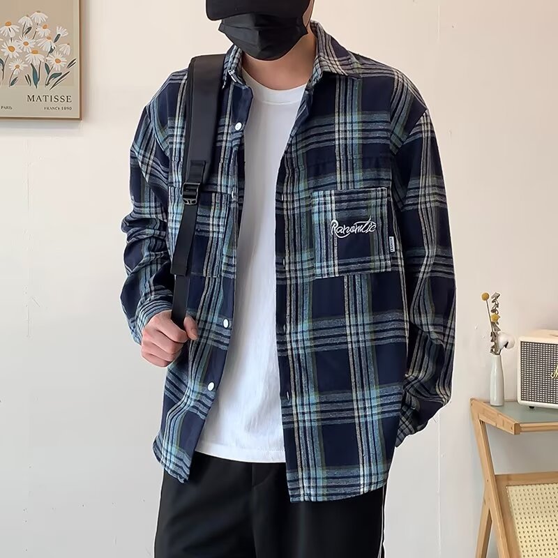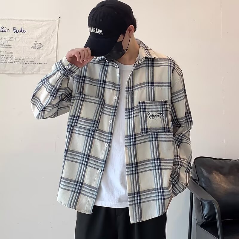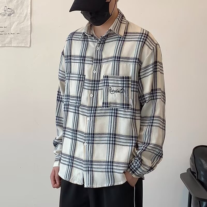 격자 무늬 자수 편지 긴팔 셔츠 소년 2024 봄과 가을 새로운 일본 패션 브랜드 셔츠 고급 센스 재킷스토어 가기