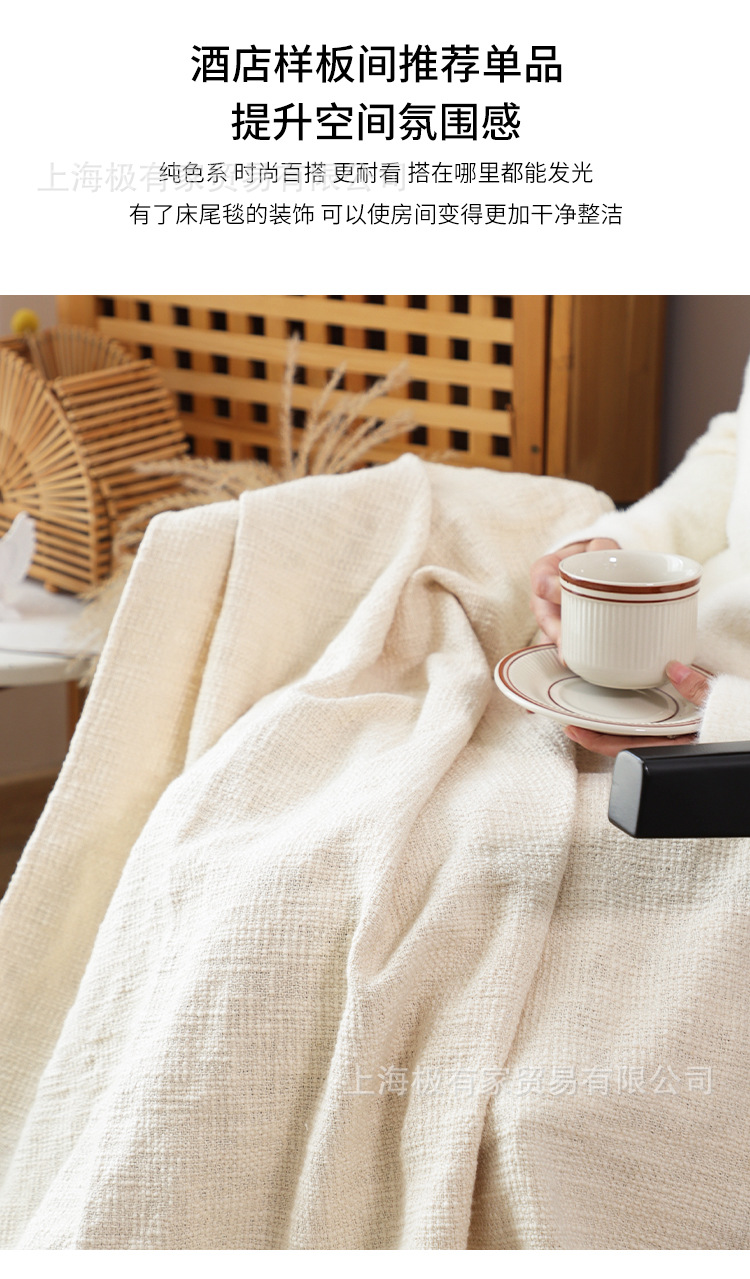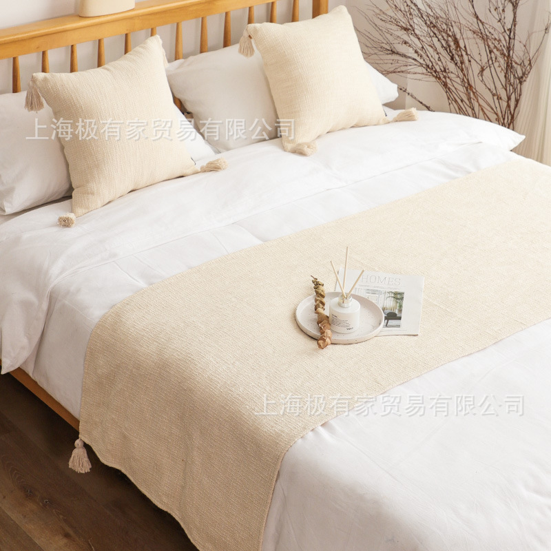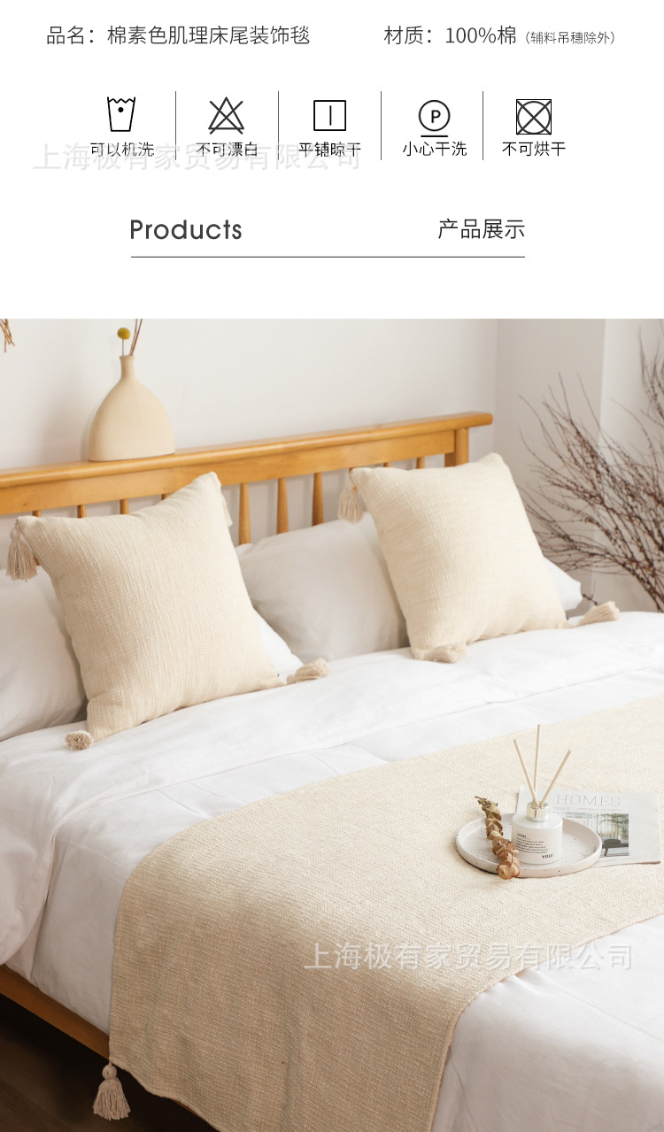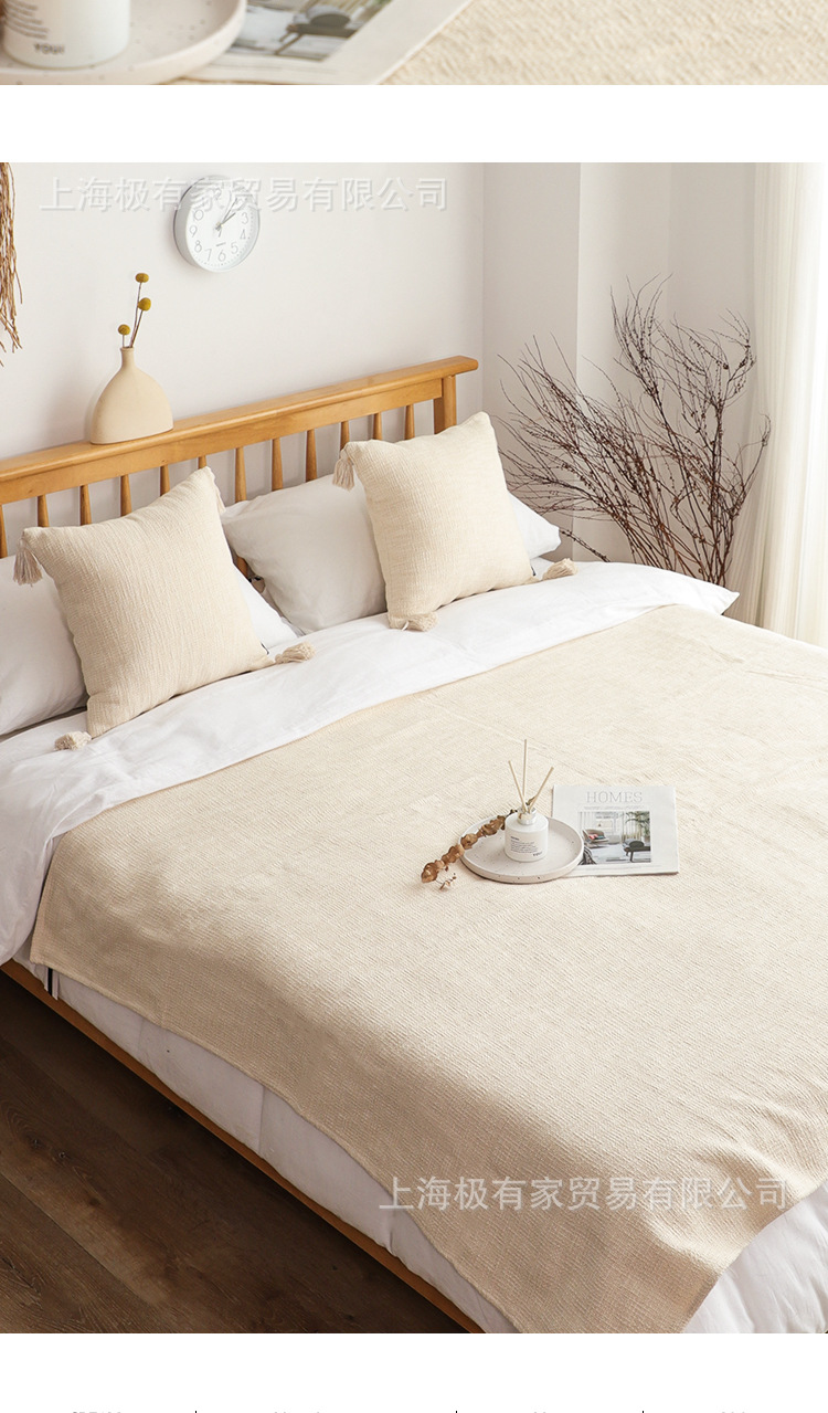 순면 무지 질감 침대 끝 장식 담요 침대 커버 민슈쿠 호텔 침대 끝 타월 거실 소파 담요 커버 담요