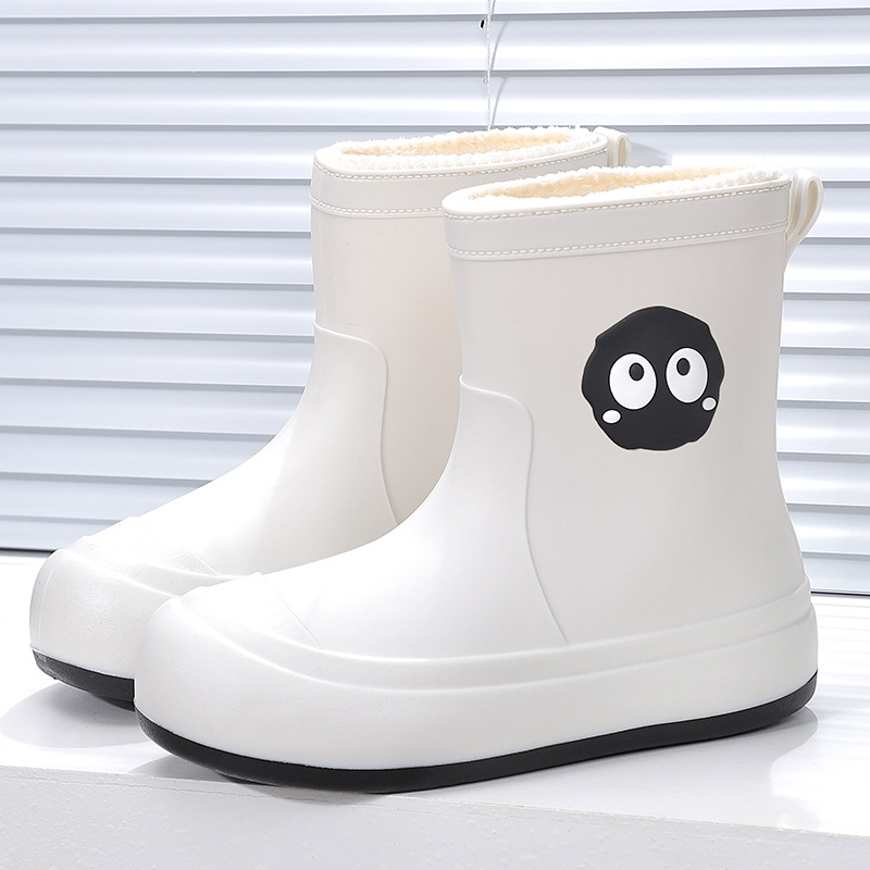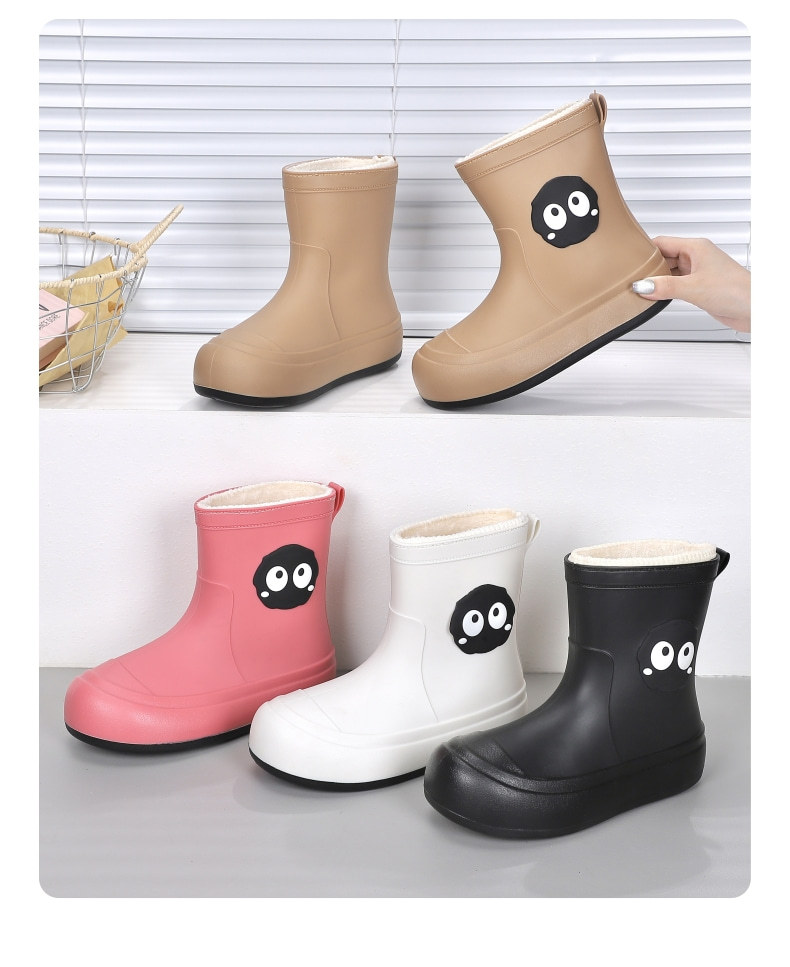 귀여운 학생 비 신발 맞춤형 기모 물 신발 여성 사계절 창조적 인 소프트 단독 미끄럼 방지 방수 대형 어린이 비 신발