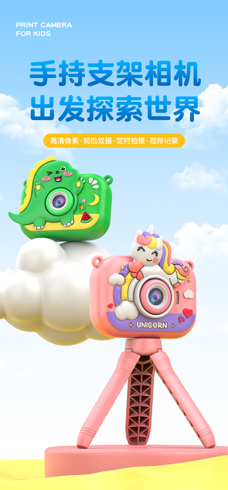 크로스 국경 Y6 스탠드 어린이 디지털 카메라 만화 카메라 휴대용 DSLR 카메라 장난감 생일 선물