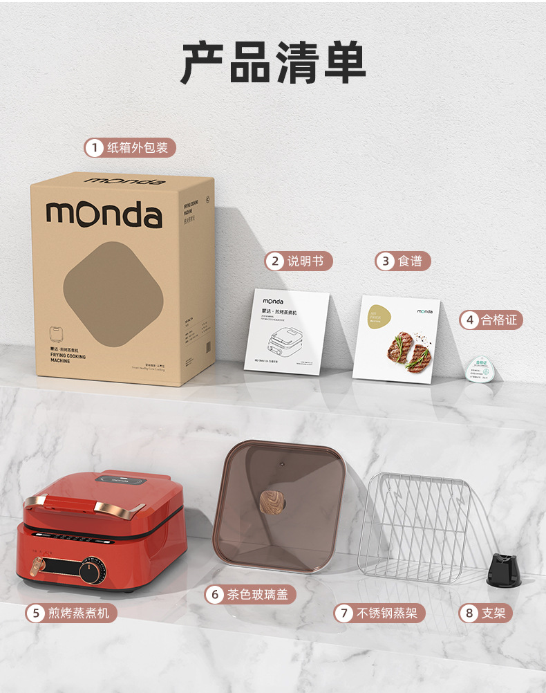 • 라이트 럭셔리 레드 + 유리뚜껑 + 스테인리스 찜대 + 레시피 + 스탠드 [신제품 추천 심화 베이킹팬]