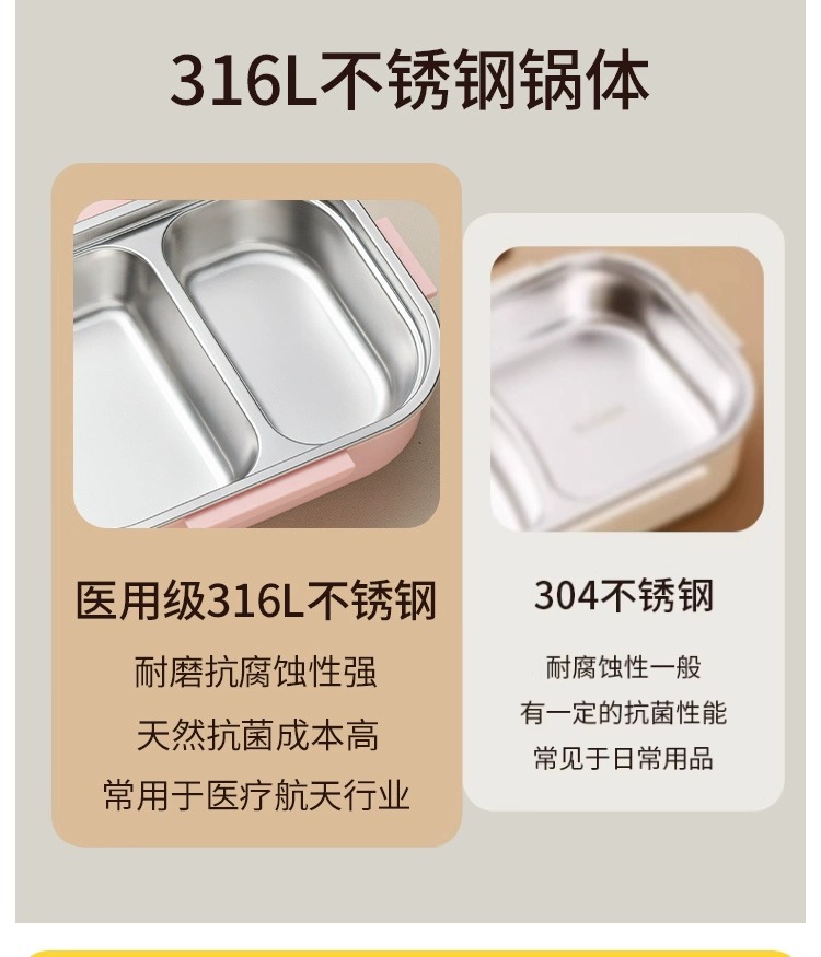 어린이와 초등학생을위한 단열 도시락 특별 도시락 316 스테인레스 스틸 분리 디너 플레이트 사무실 근로자 도시락