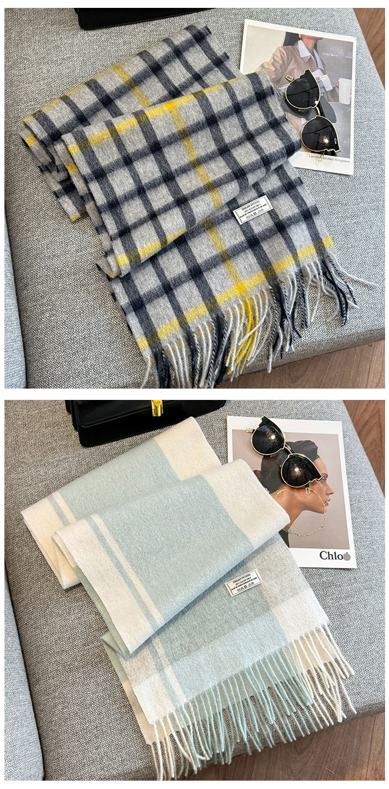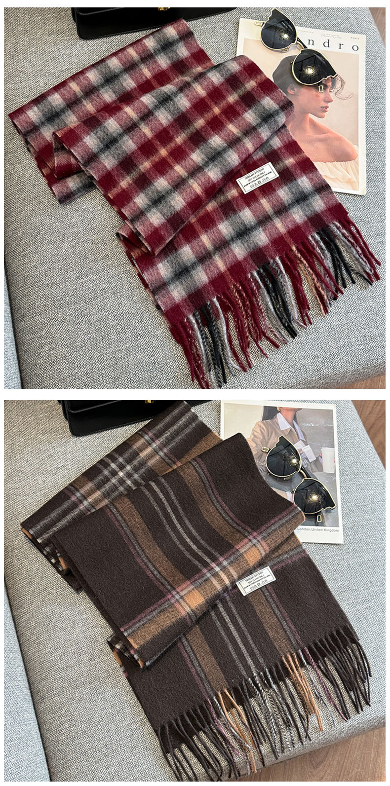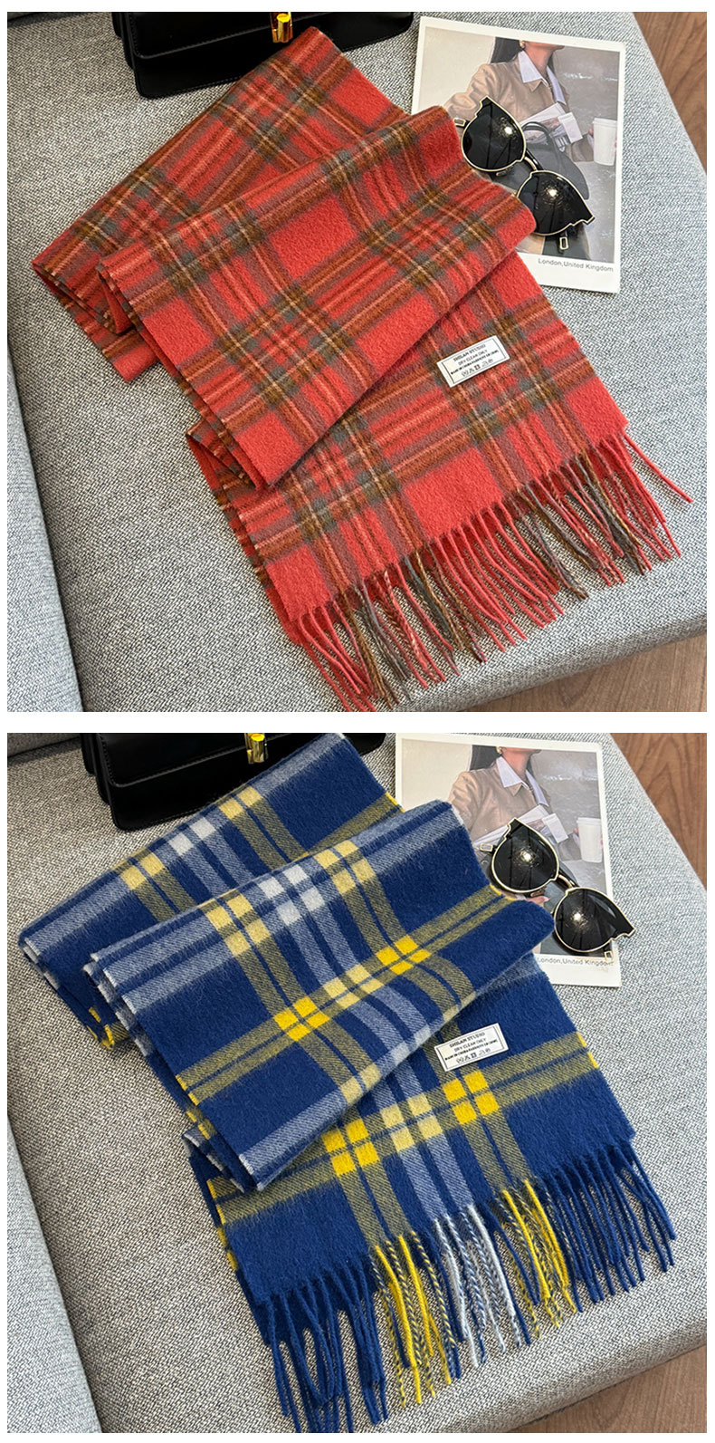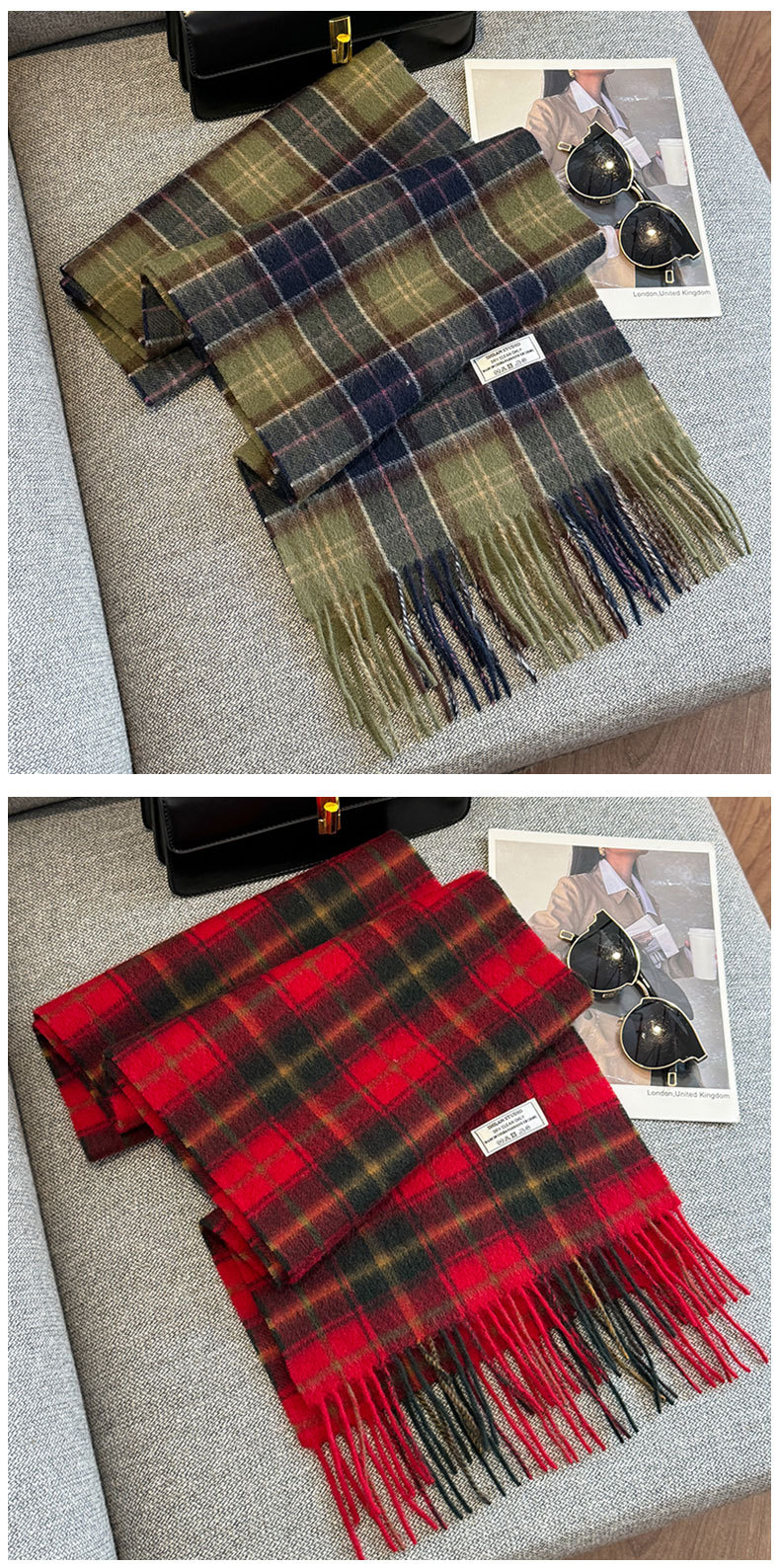100 양모 스카프 여성의 가을과 겨울 클래식 영국 격자 무늬 커플 따뜻한 목 남자 하이 엔드 듀얼 사용 목도리스토어 가기