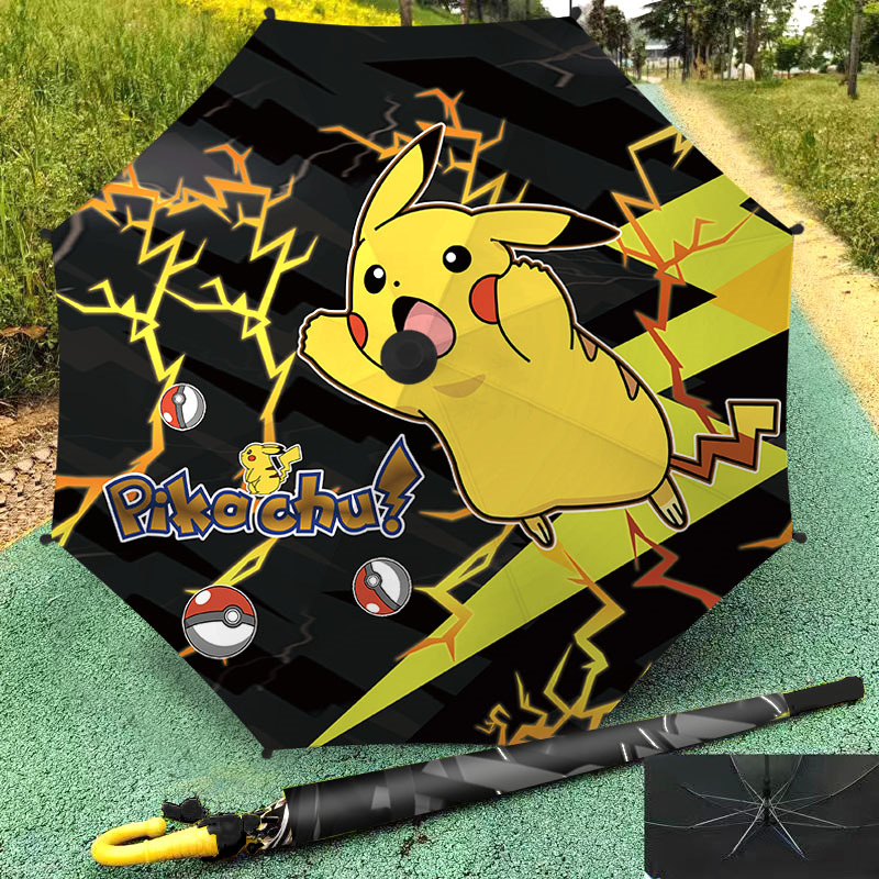 유치원 및 초등학생을위한 피카추 어린이 우산 만화 내구성 써니 우산 울트라 라이트 휴대용 반자동 블랙 접착제 우산스토어 가기