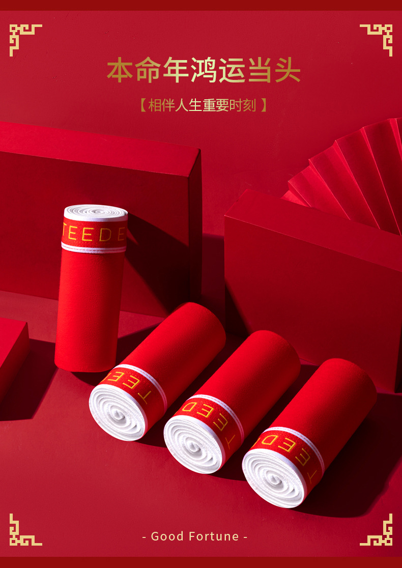스네이크 코튼의 붉은 해 남성 속옷 순수 코튼 복서 플러스 사이즈 7A 항균 복서 반바지 웨딩 축제