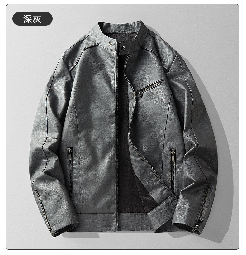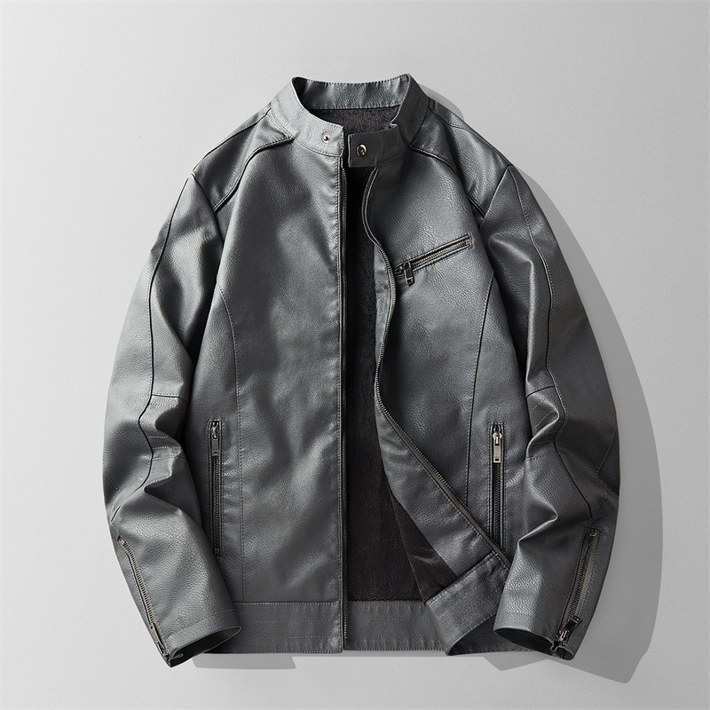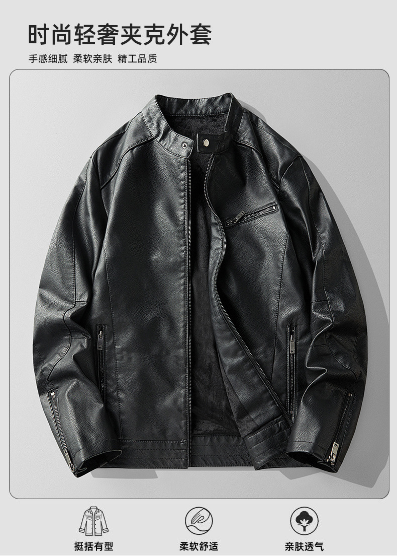 2024 새로운 탑 가죽 자켓 PU 부드러운 가죽 남자 가을 겨울 가죽 빛 사업 캐주얼 칼라 간단한 올 매치 클립