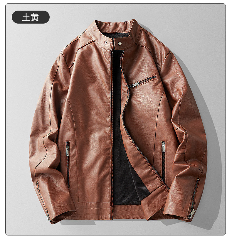 2024 새로운 탑 가죽 자켓 PU 부드러운 가죽 남자 가을 겨울 가죽 빛 사업 캐주얼 칼라 간단한 올 매치 클립스토어 가기