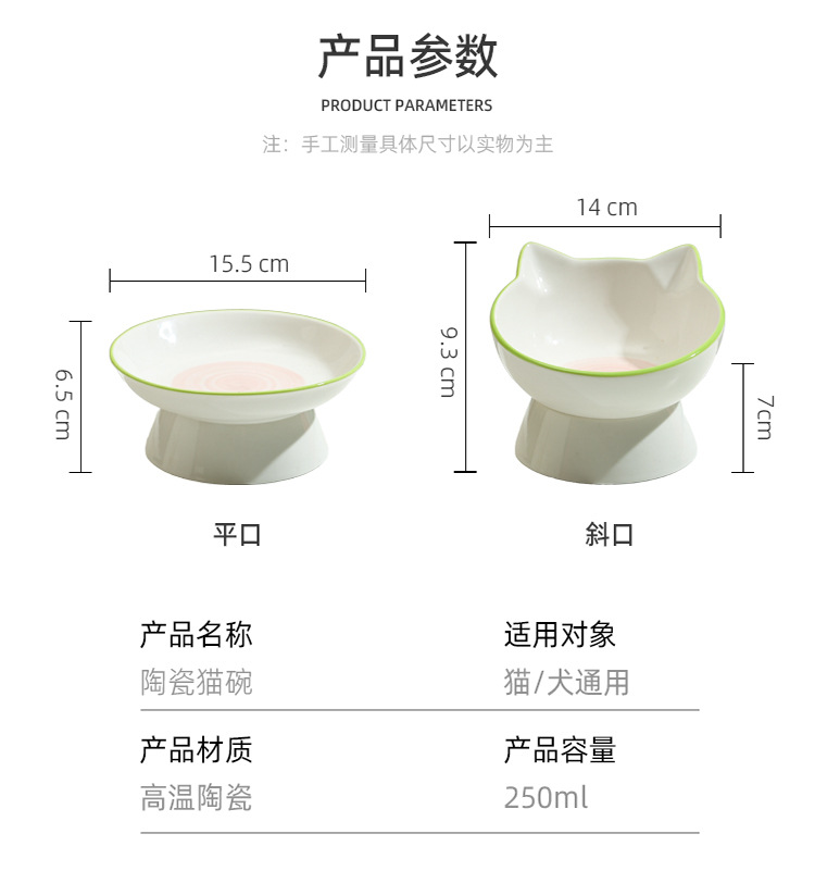 수출 고양이 그릇 세라믹 고양이 음식 그릇 개 그릇 고양이 음식 분지 큰 직경 물 그릇 대각선 그릇 안티 노크 애완 동물 용품