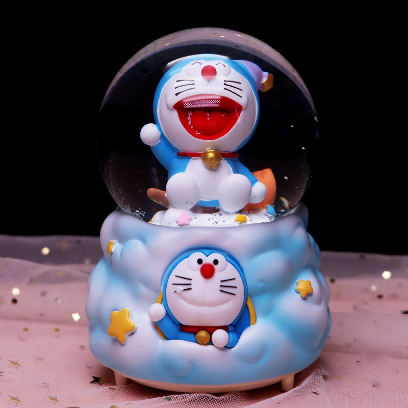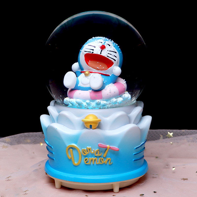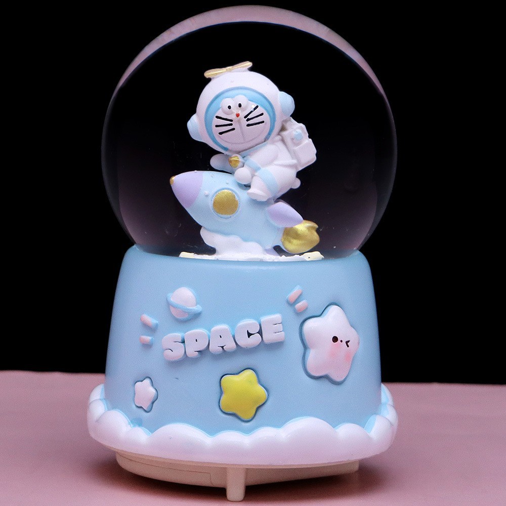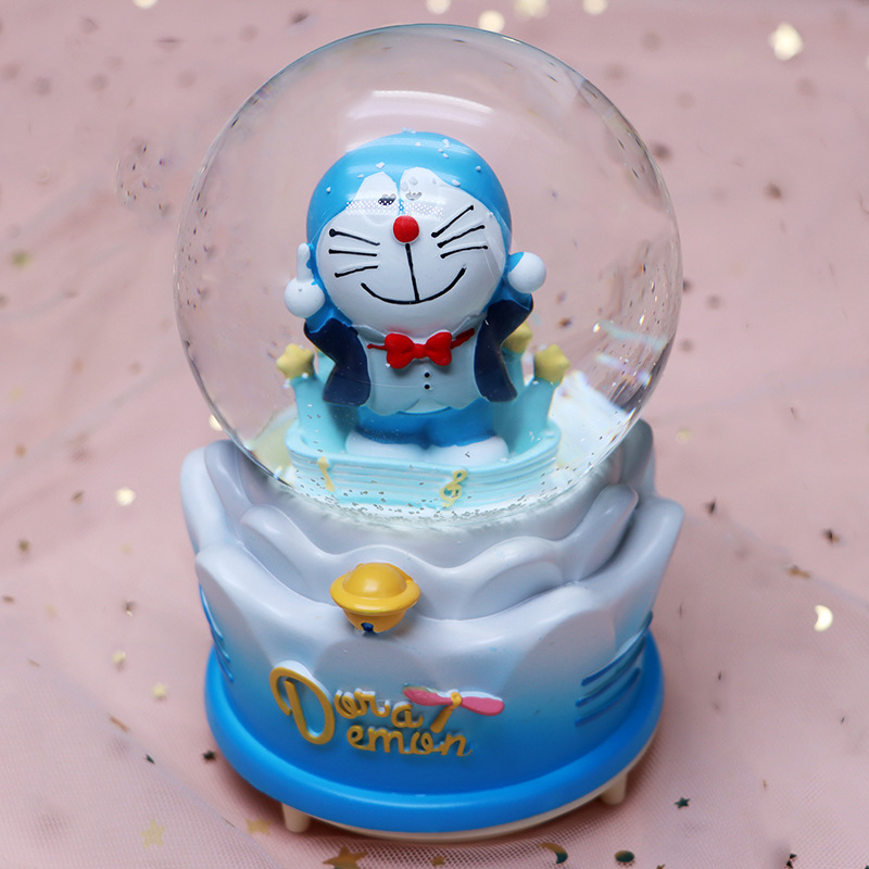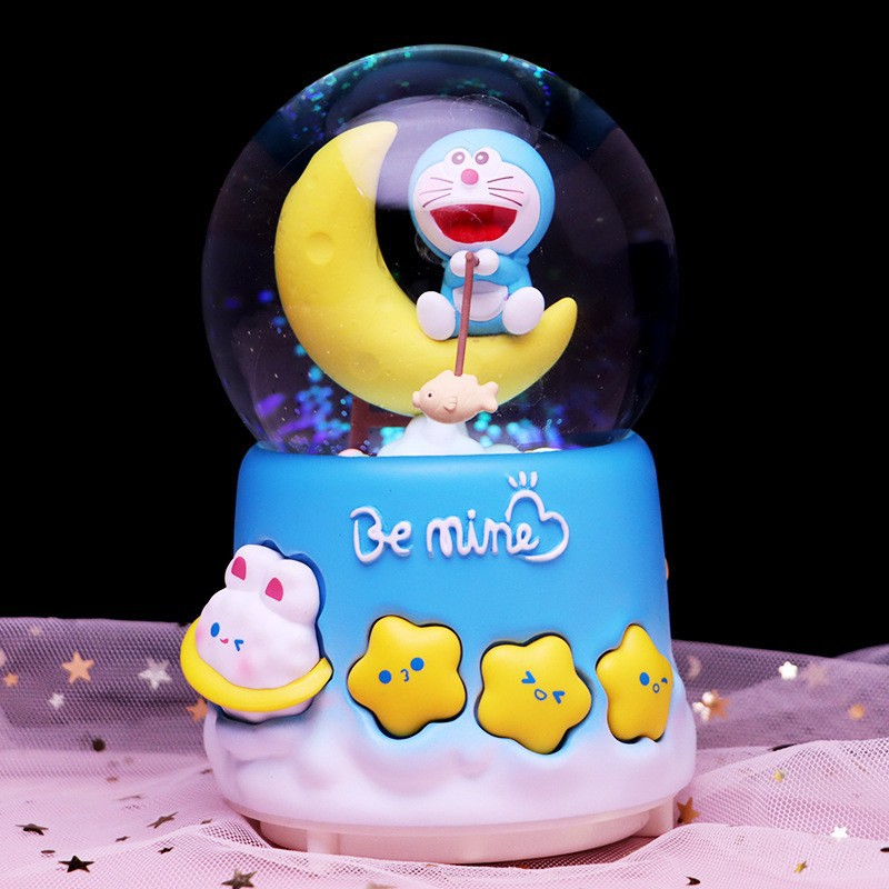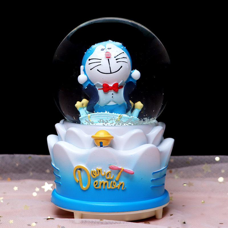 만화 애니메이션 블루 뚱뚱한 크리스탈 볼 뮤직 박스 창조적 인 빛나는 딩당 고양이 장식품 학생과 소년을위한 생일 선물