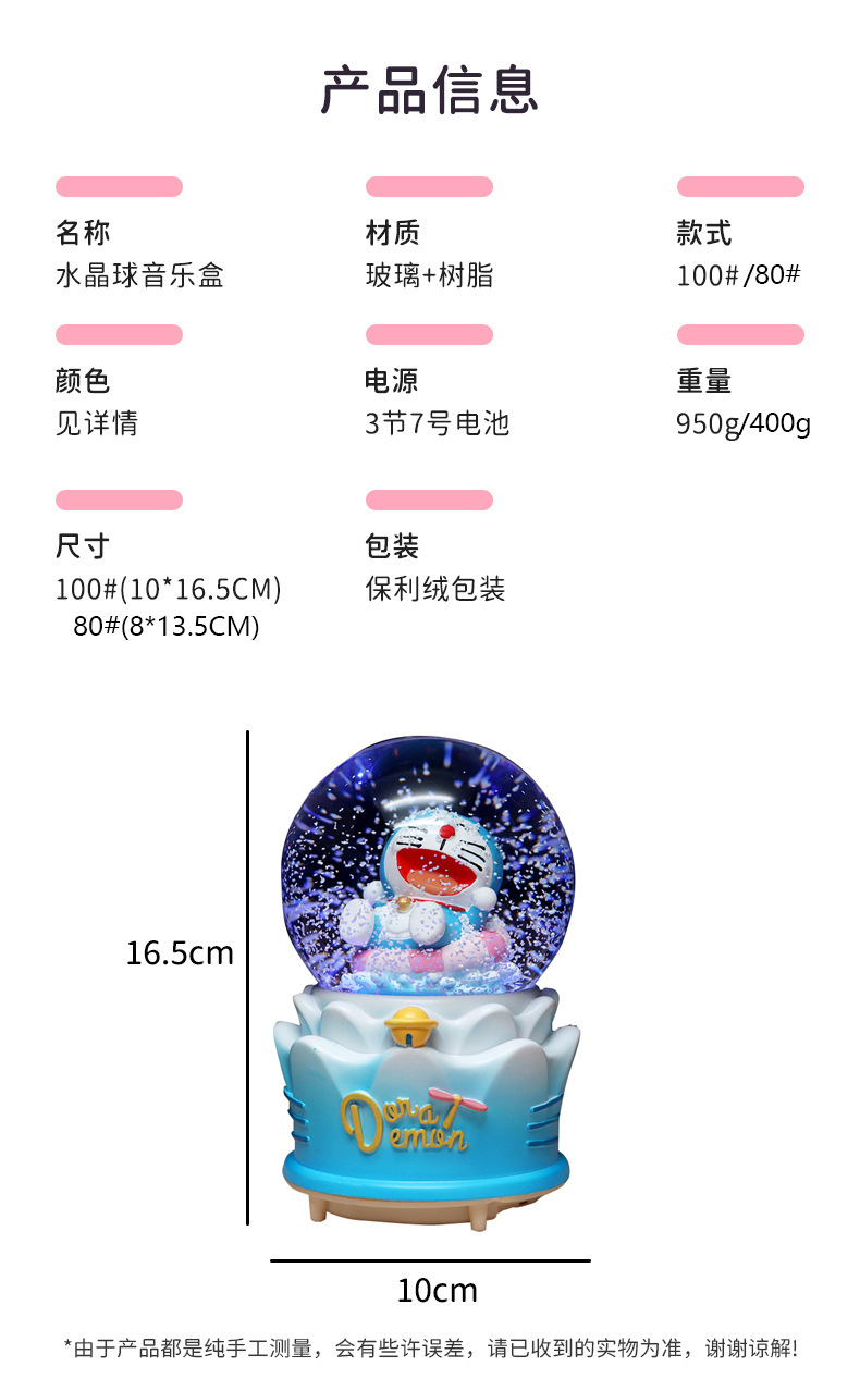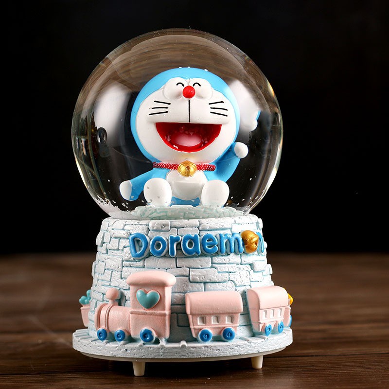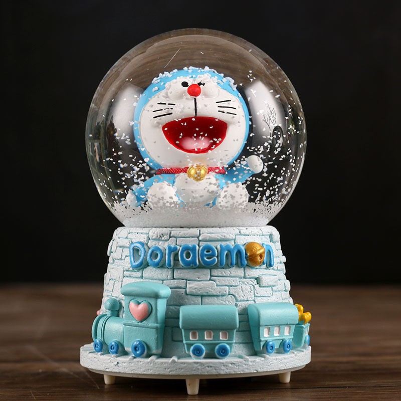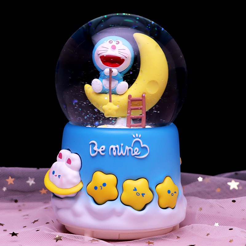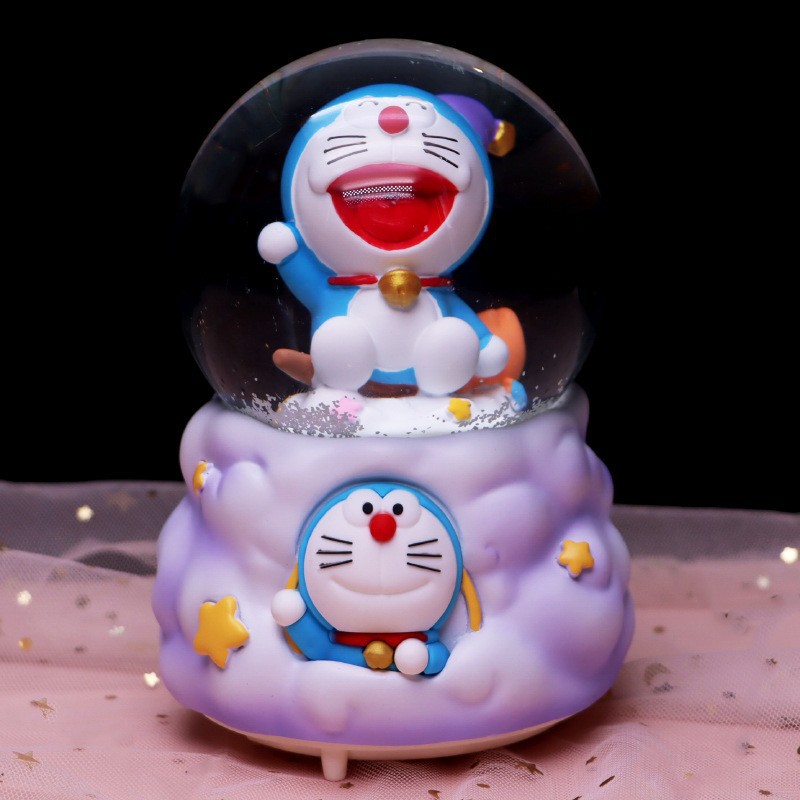 만화 애니메이션 블루 뚱뚱한 크리스탈 볼 뮤직 박스 창조적 인 빛나는 딩당 고양이 장식품 학생과 소년을위한 생일 선물
