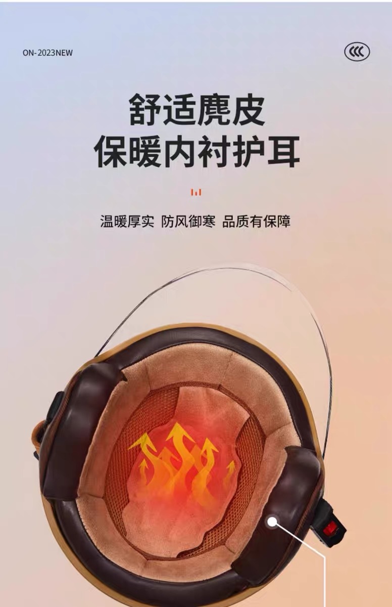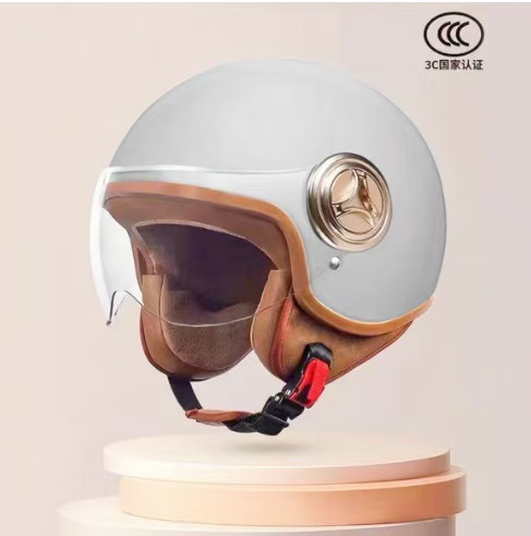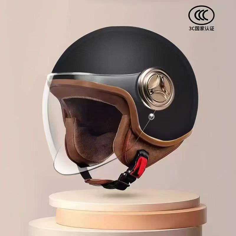 클래스 A 새로운 국가 표준 전기 오토바이 헬멧 사계절 남성과 여성의 하프 헬멧 가을, 겨울 따뜻하고 안전한 복고풍 할리 헬멧