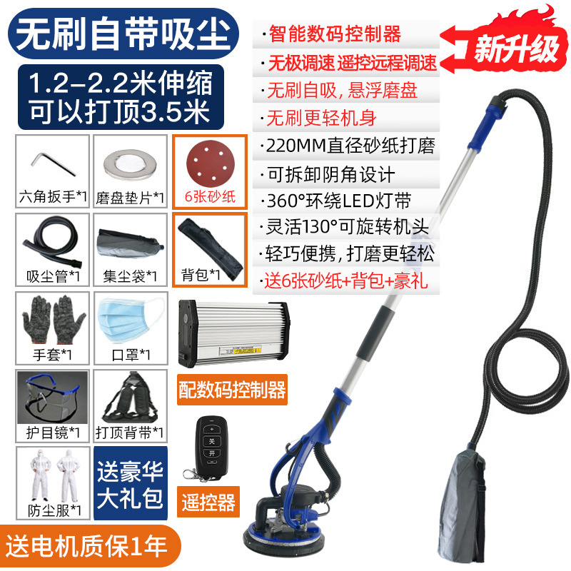 벽 샌딩 작은 퍼티 먼지가없는 모래 종이 가정용 벽 샌딩 기계 자체 프라이밍 모래 종이 브러시리스 벽 샌딩