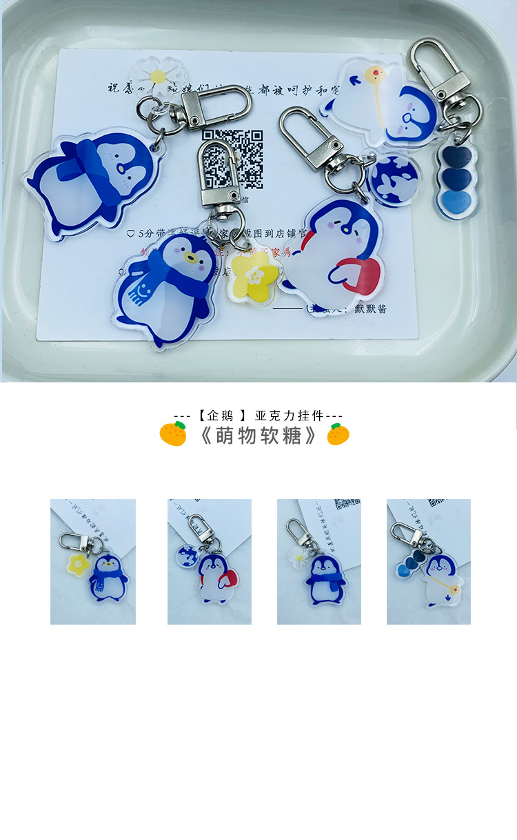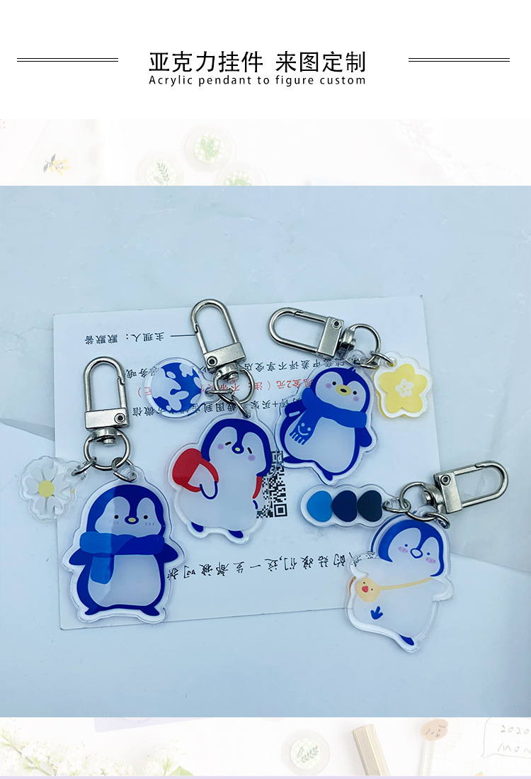 작은 빨간 책에 한국 만화 귀여운 펭귄 일기 아크릴 키 체인 보석 펜던트스토어 가기
