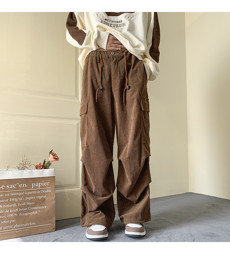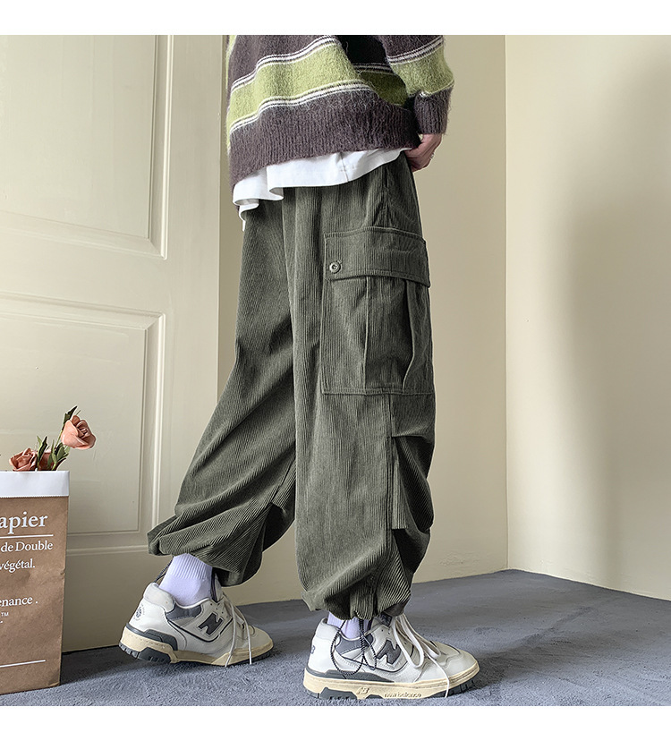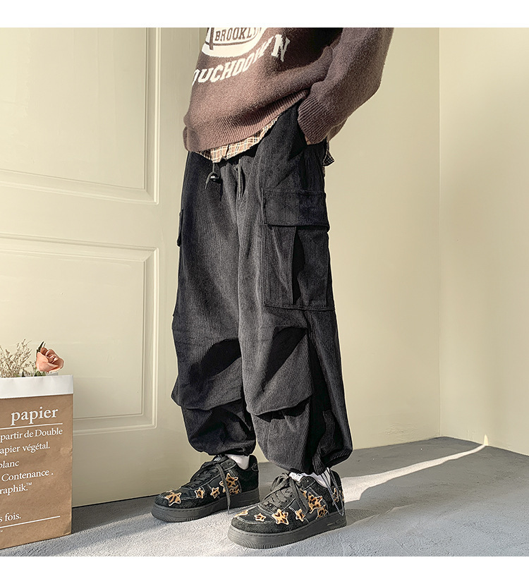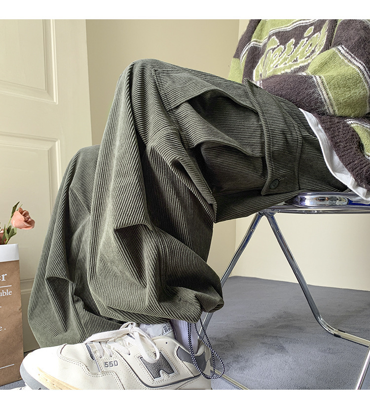 아메리칸 코듀로이 오버홀 남성 가을 겨울 기모 패션 브랜드 캐주얼 플러스 사이즈 바지 스트레이트-다리 느슨한 넓은 다리 바지스토어 가기