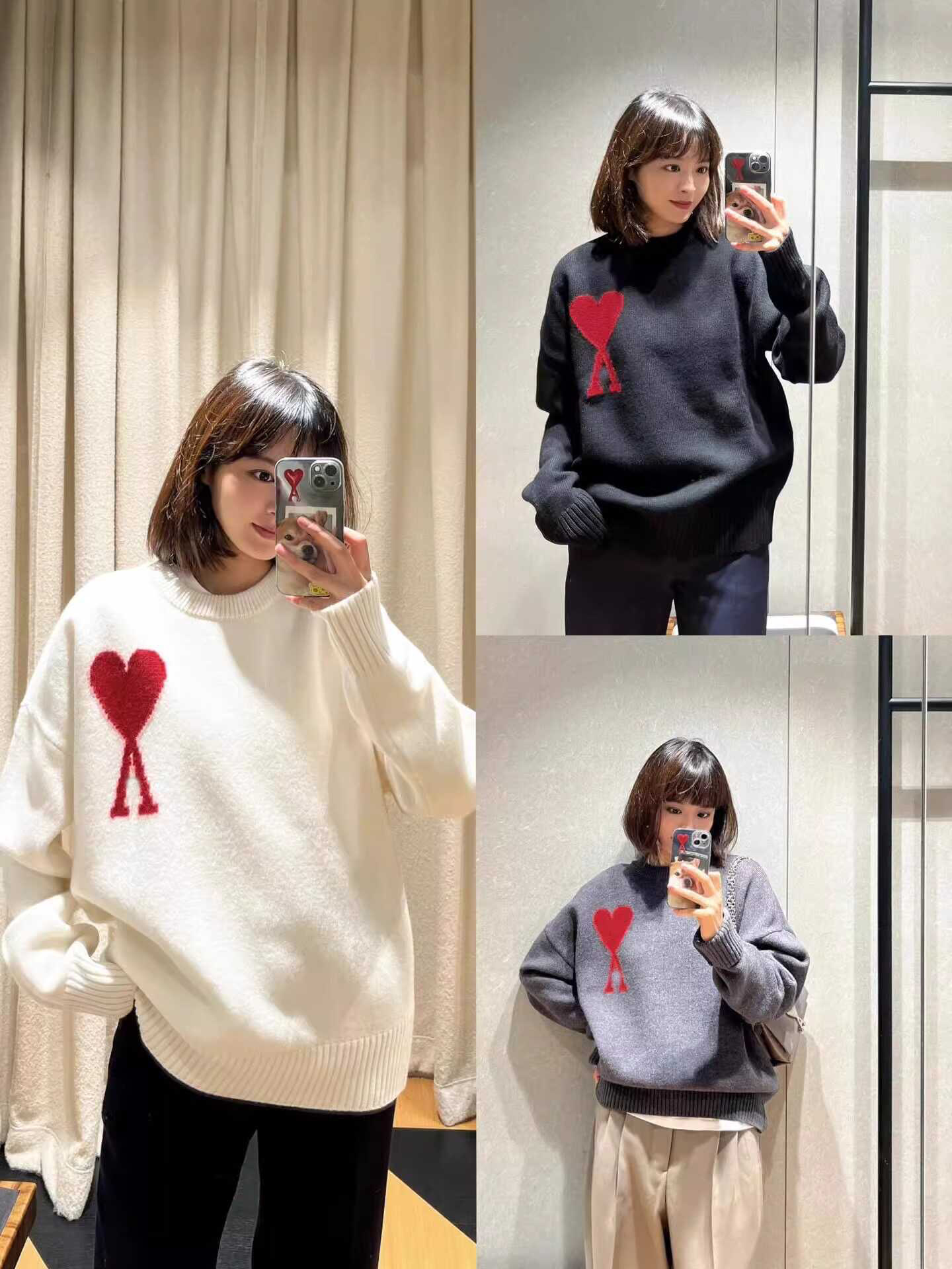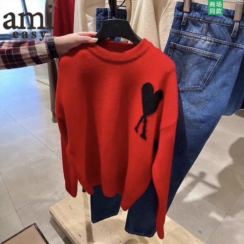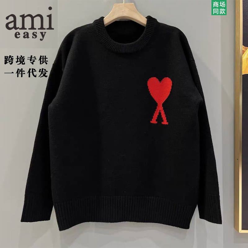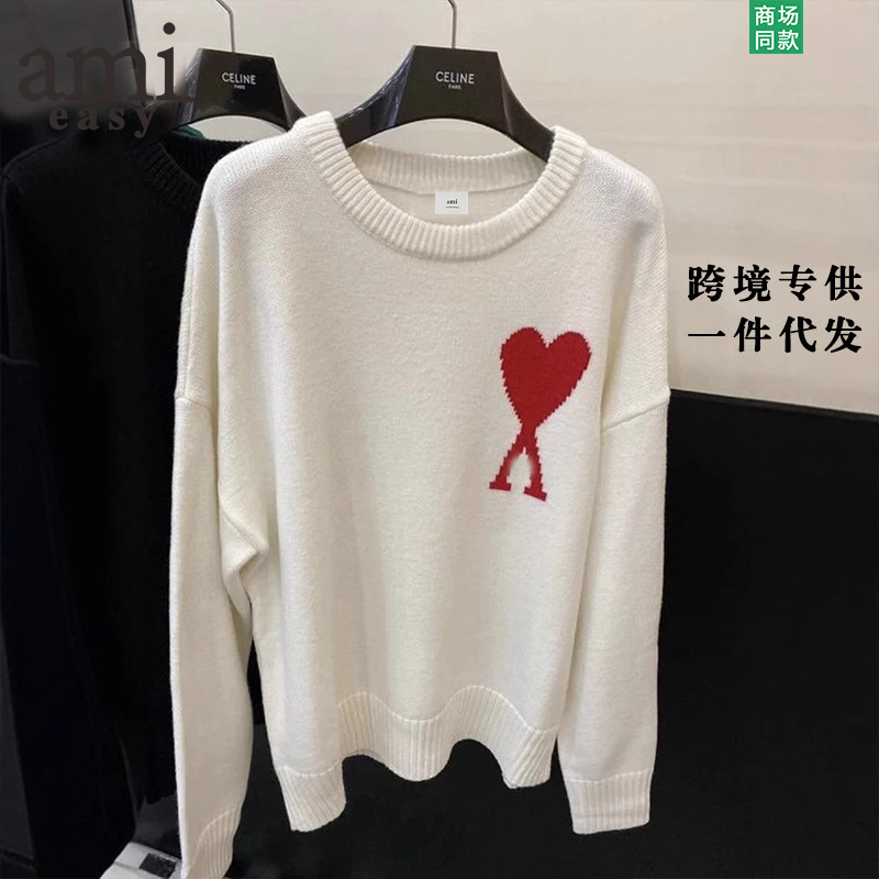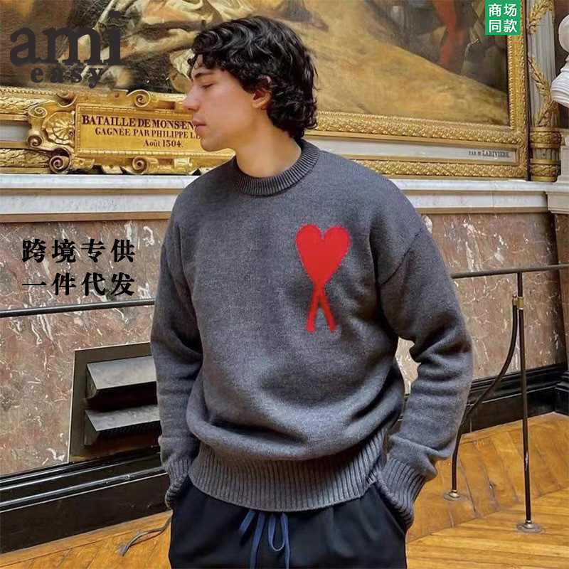 AMI&EASY 크로스보더 트렌디 브랜드 빅 러브 자카드 라운드넥 풀오버 스웨터 남성용 겨울 따뜻하고 편안한 스웨터스토어 가기