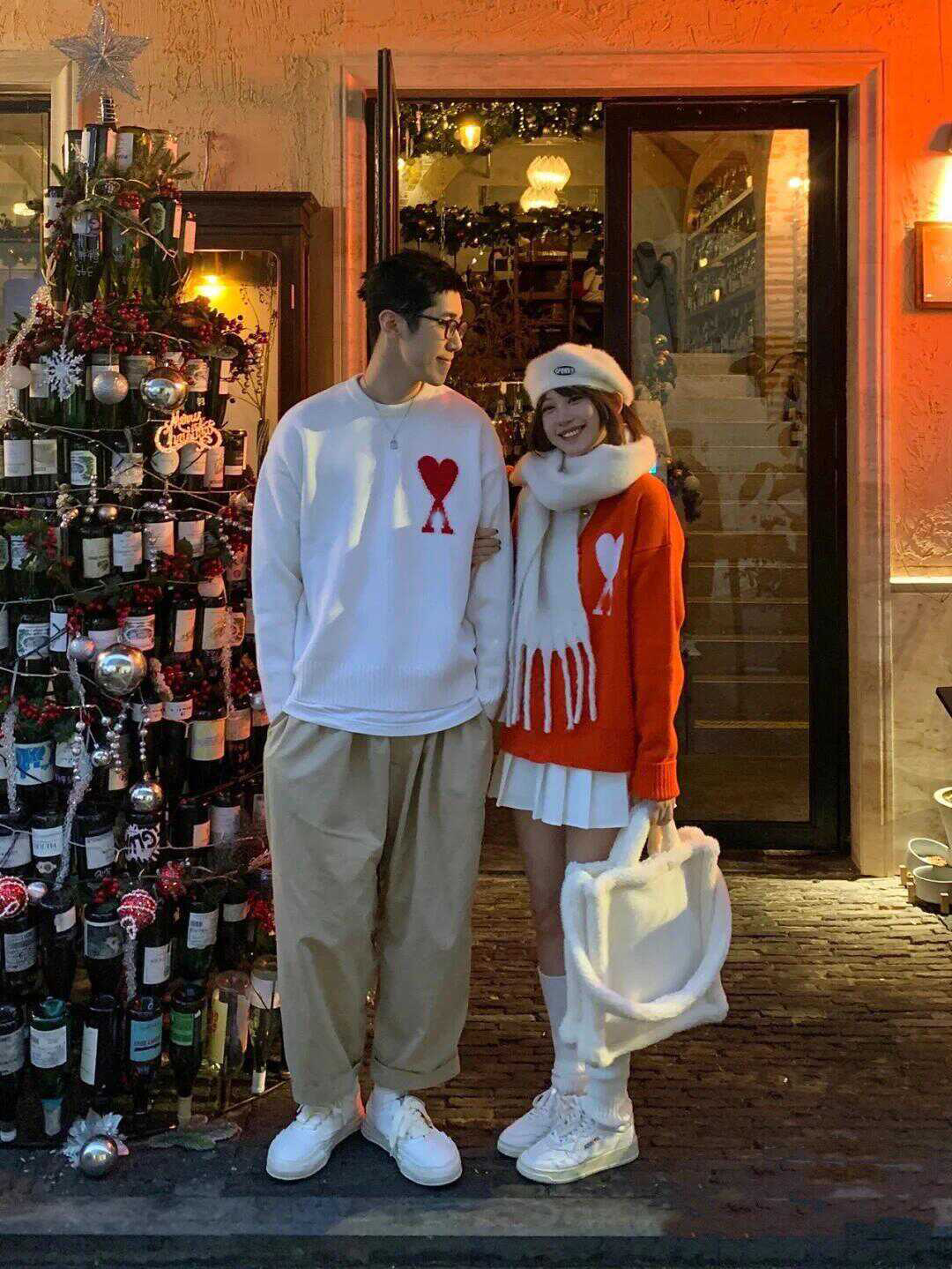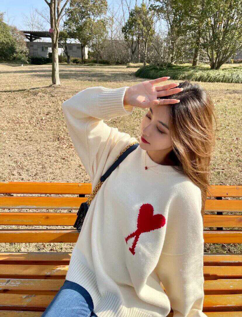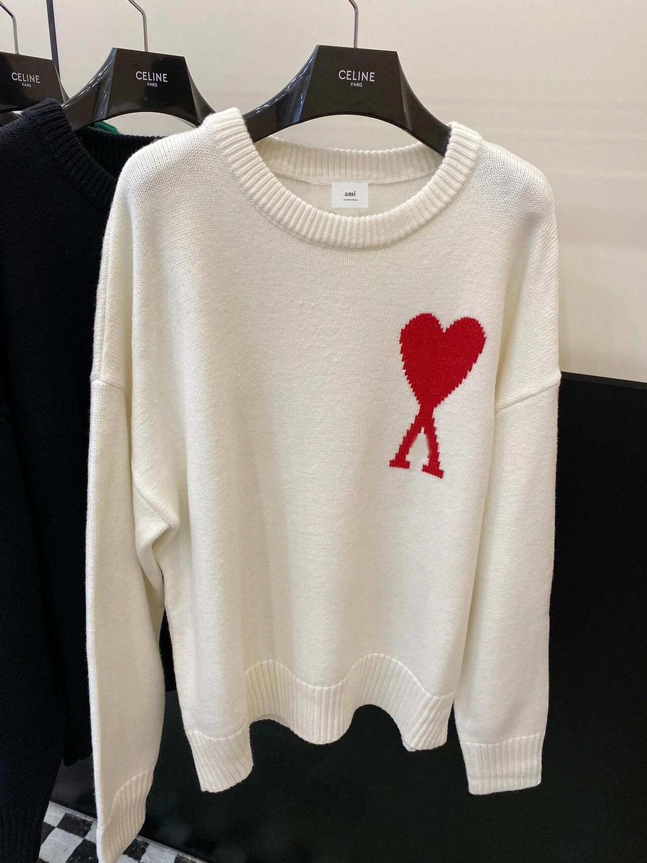 AMI&EASY 크로스보더 트렌디 브랜드 빅 러브 자카드 라운드넥 풀오버 스웨터 남성용 겨울 따뜻하고 편안한 스웨터스토어 가기
