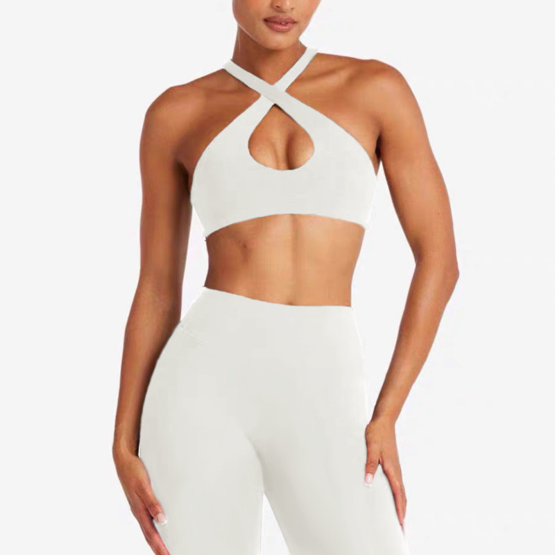 뷰티 백 피트니스 스포츠 크로스 섹시 할로우 요가 세트 투웨어 하이 레벨 조끼 여성 훈련 댄스 세트