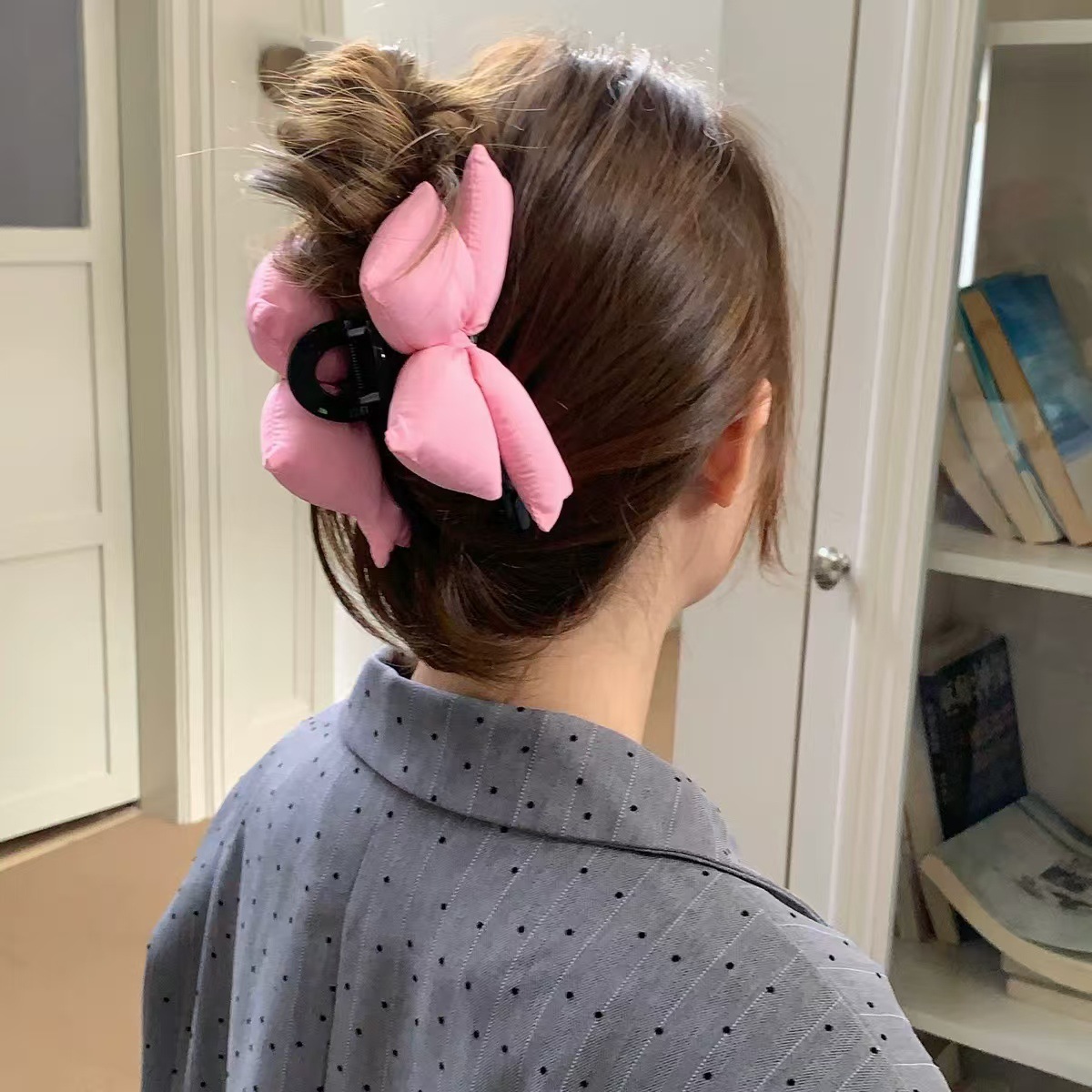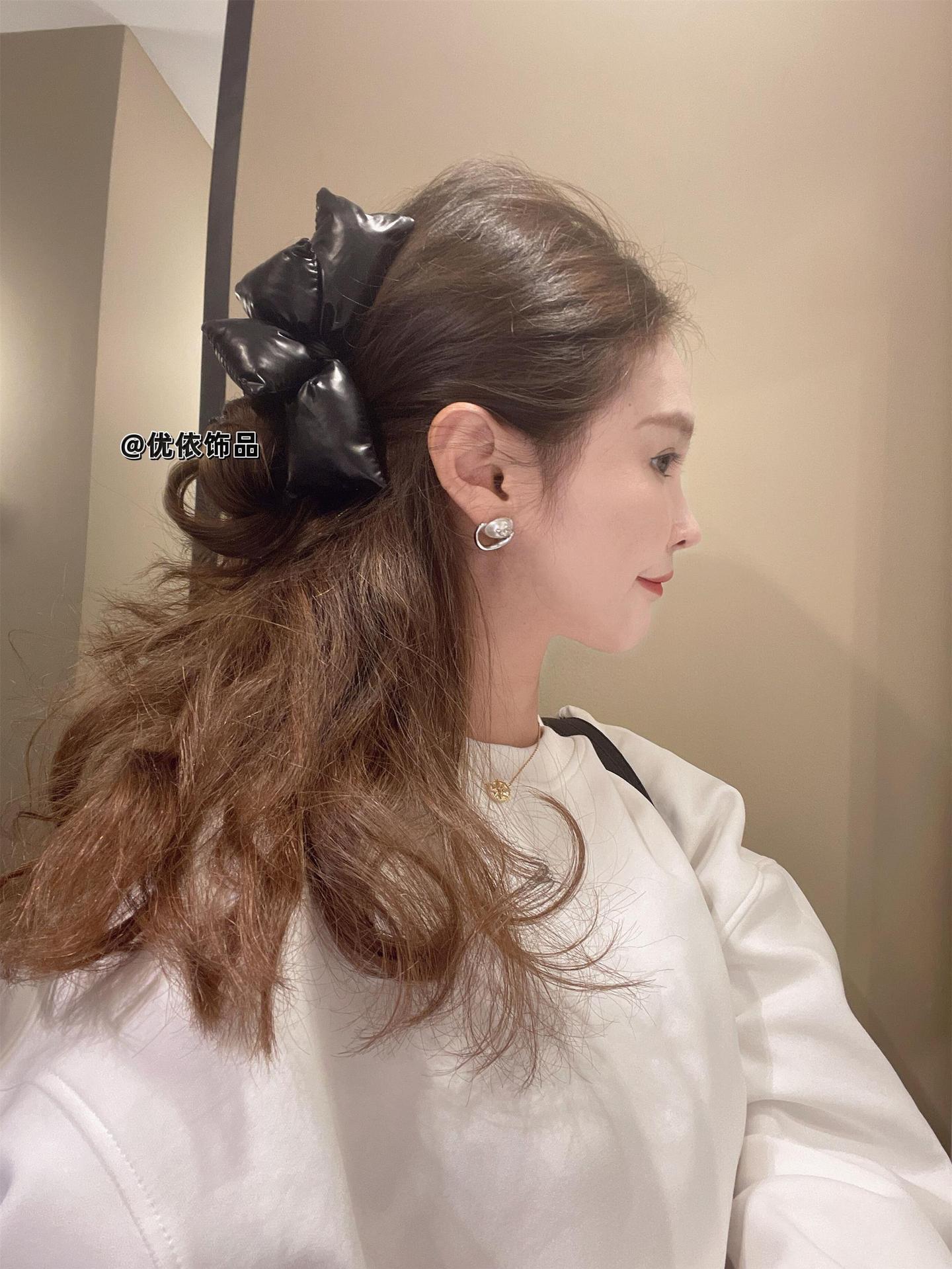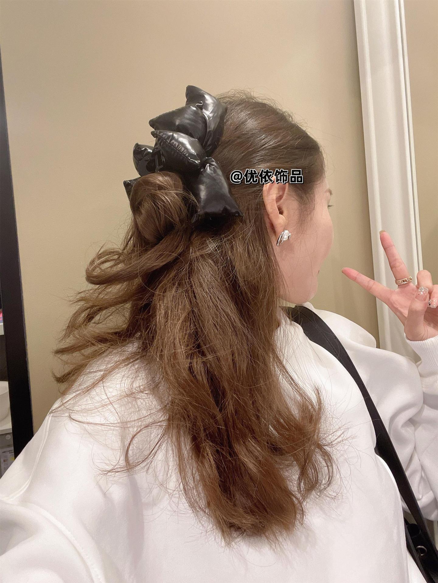 Ins 인터넷 연예인 핫 패션 브라이트 블랙 스폰지 빅 보우 그랩 클립 유행 헤어 상어 클립 새로운 여성