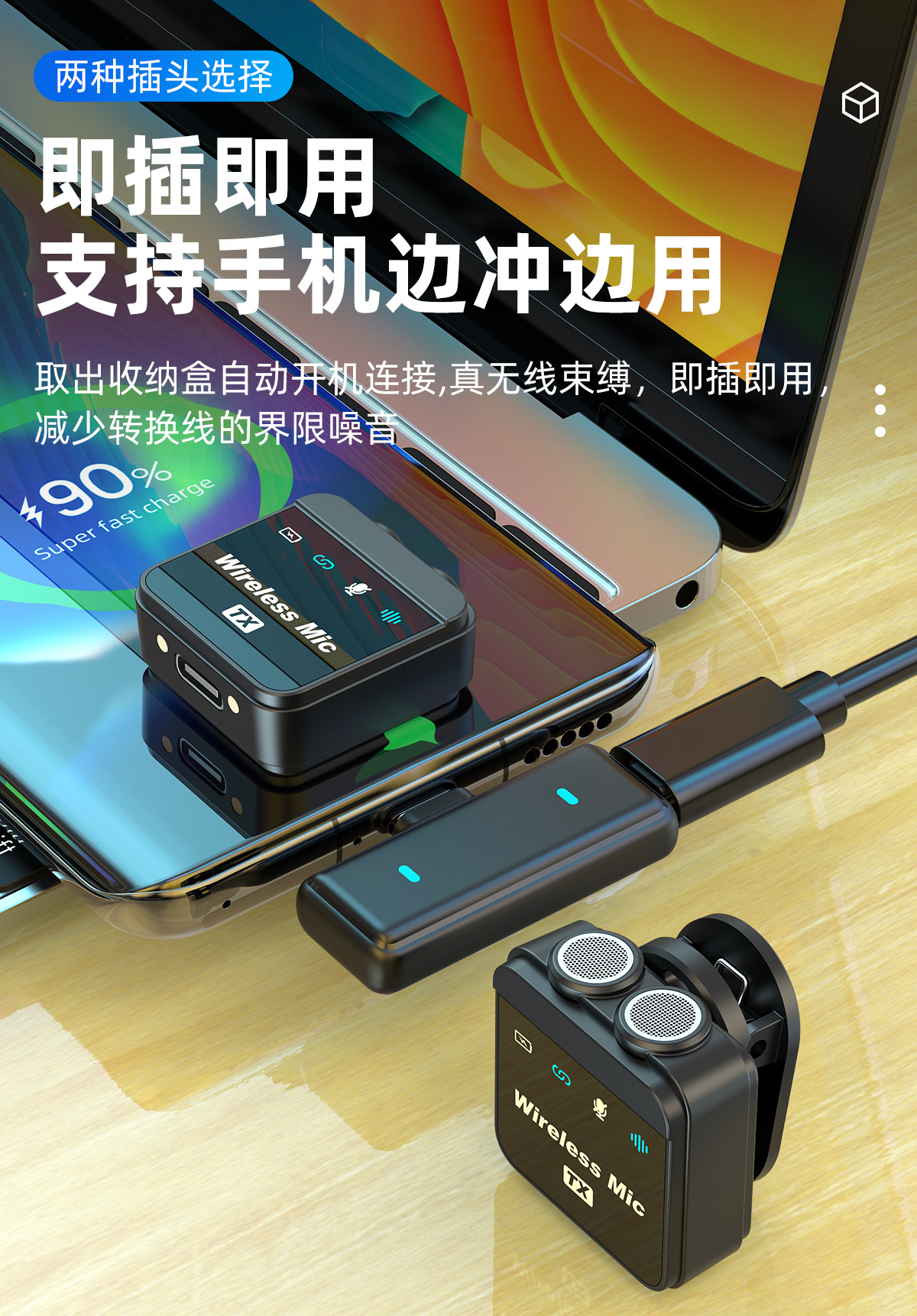 새로운 무선 칼라 클립 마이크 Q9 더블 마이크 자기 흡입 클리어 라디오 지능형 소음 감소 거리 긴 미니 마이크