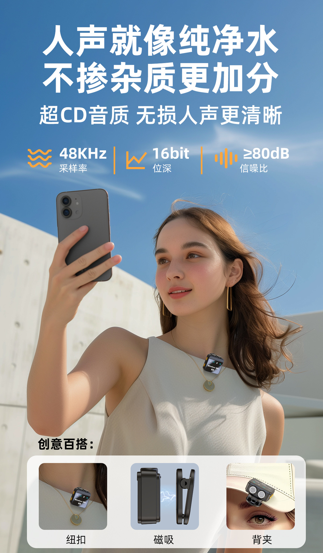 새로운 무선 칼라 클립 마이크 Q9 더블 마이크 자기 흡입 클리어 라디오 지능형 소음 감소 거리 긴 미니 마이크스토어 가기