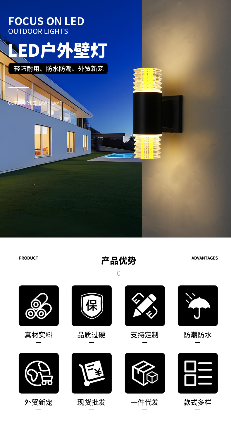 LED 야외 벽 램프 더블 헤드 빌라 외부 벽 위아래로 빛나는 안뜰 야외 기둥 방수 벽 램프스토어 가기