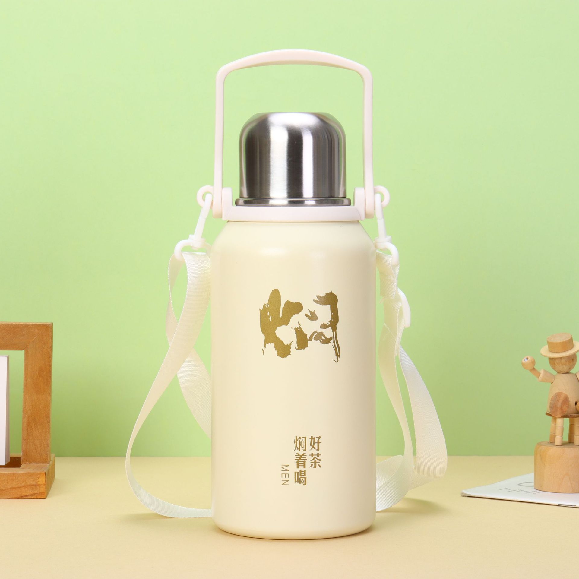 316 스테인리스 보온병 휴대용 손잡이 끈 대용량 야외 등산용 주전자 차 끓이기용 진공 보온병