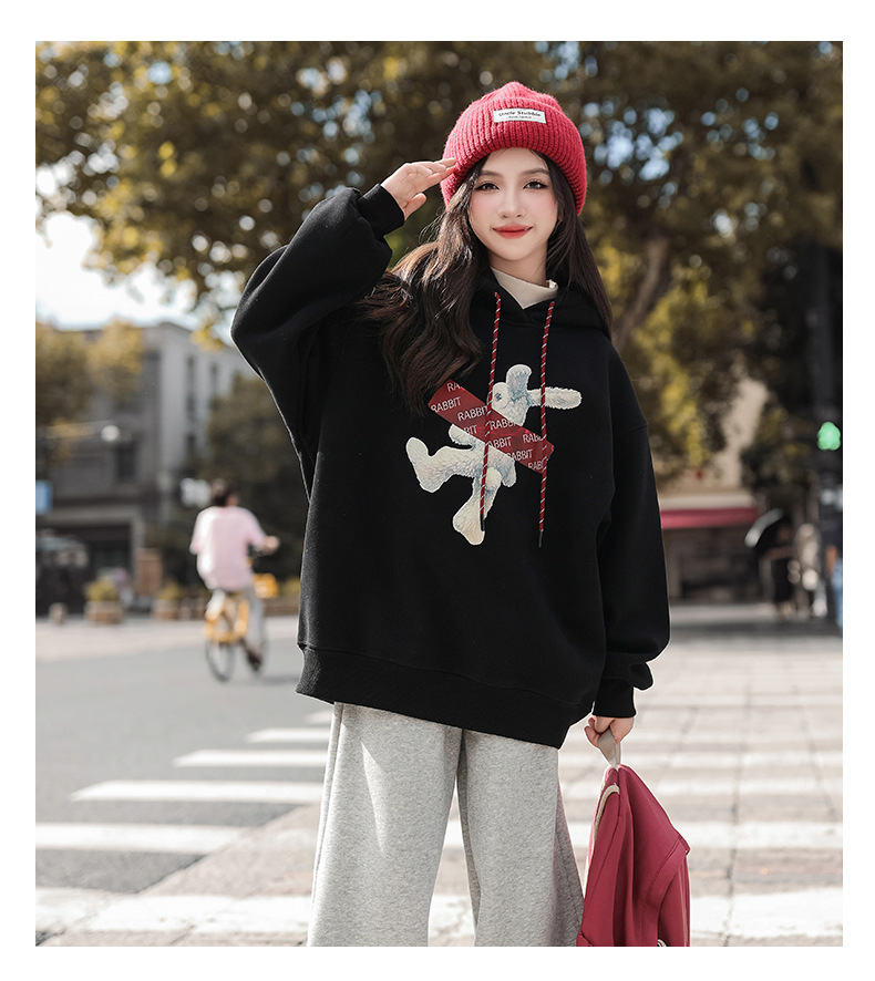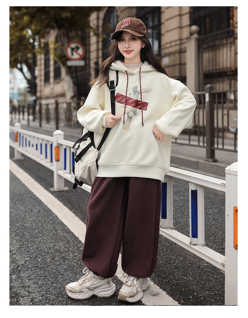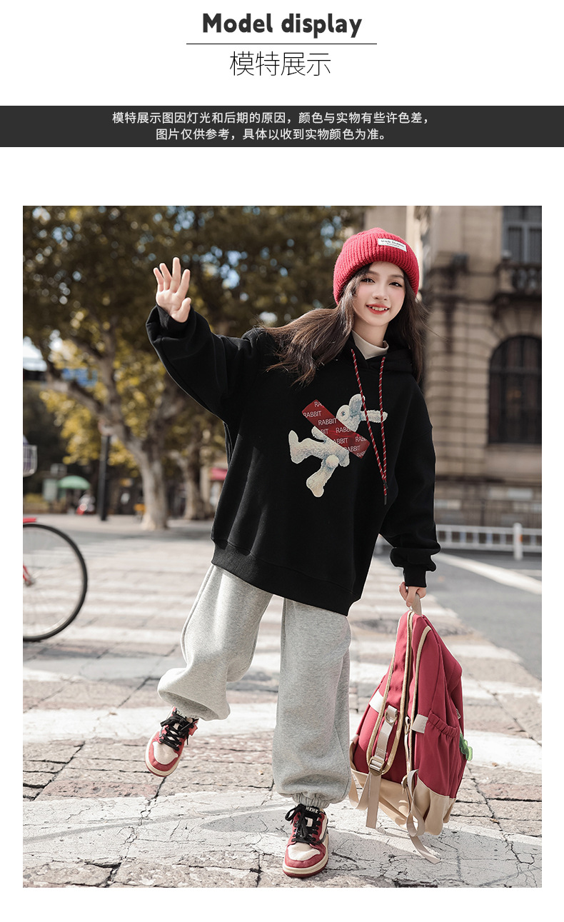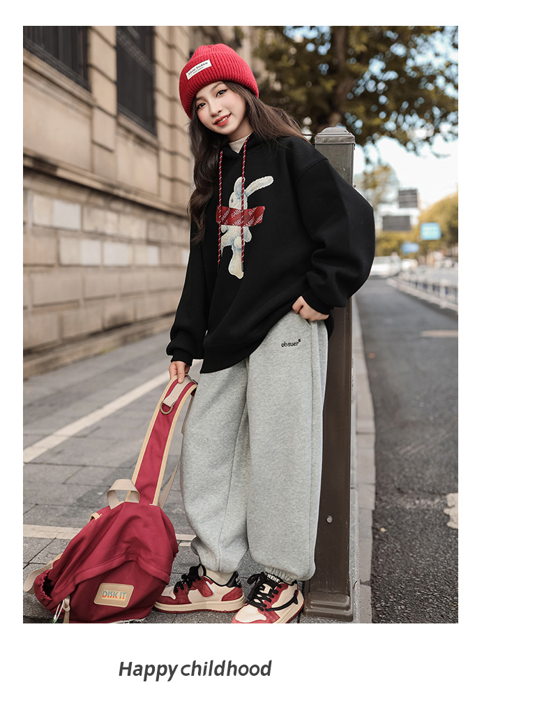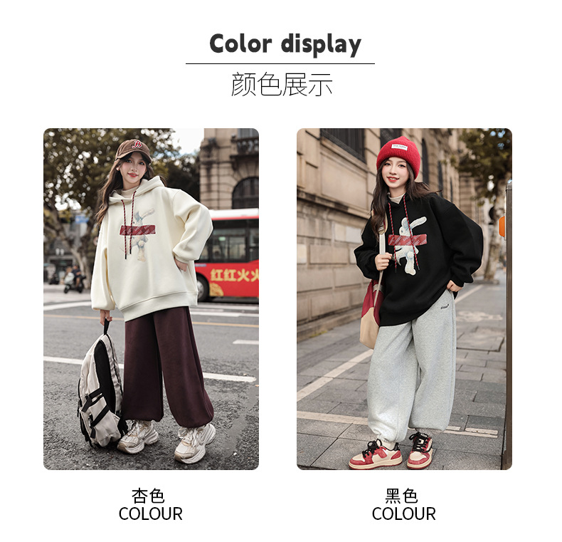 여자 기모 땀 2024 가을/겨울 새로운 스타일 큰 아이들 후드 탑 겨울 두꺼운 캐주얼 스웨트 세트스토어 가기