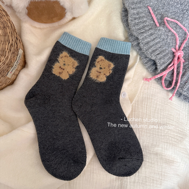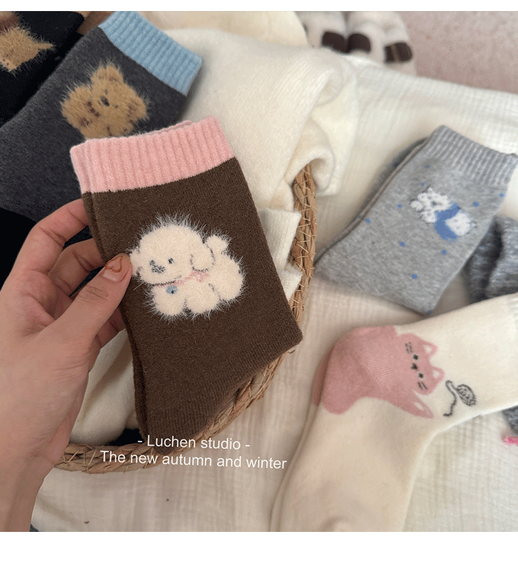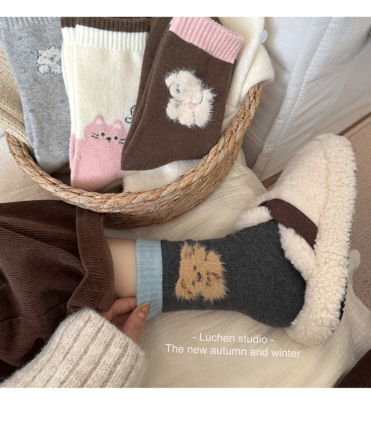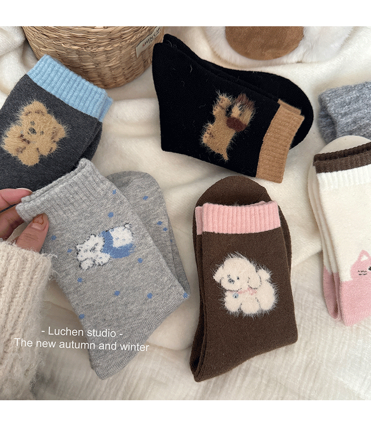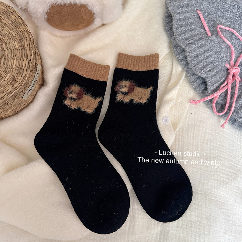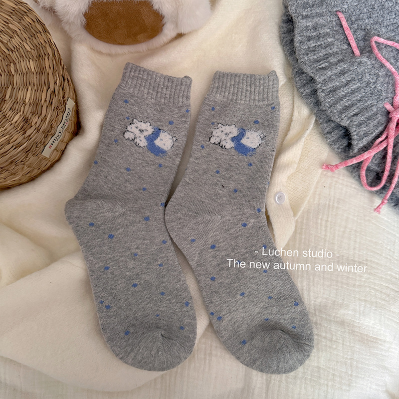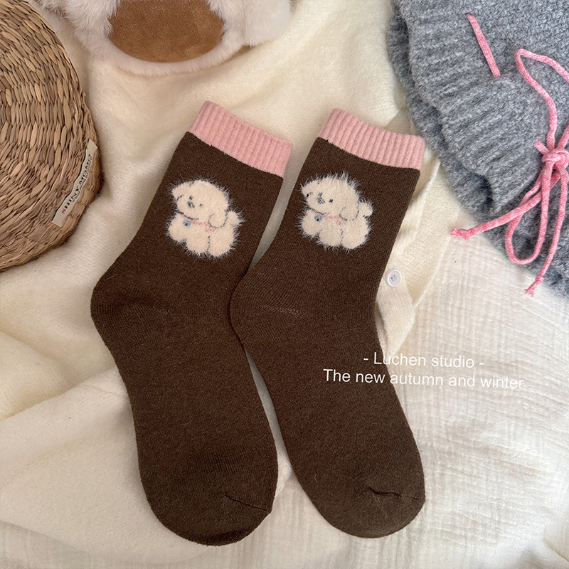 두꺼운 노크 "만화 양모 양말 어린이 중추와 겨울 두꺼운 기모 개 캐시미어 팩 양말스토어 가기