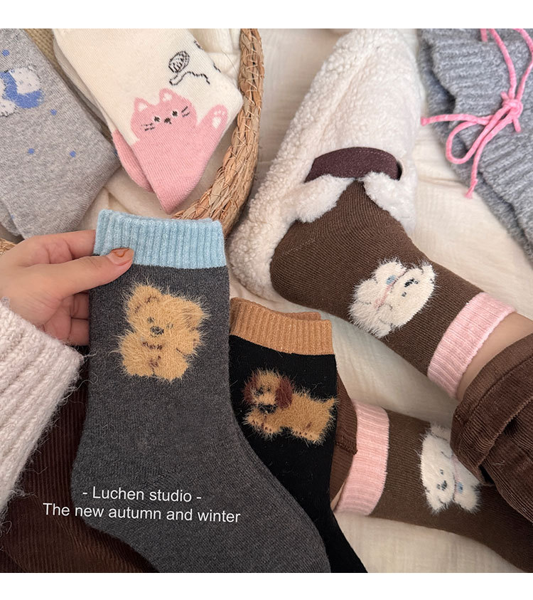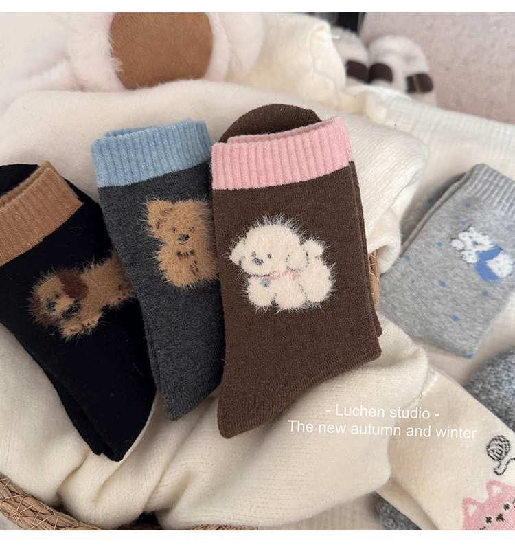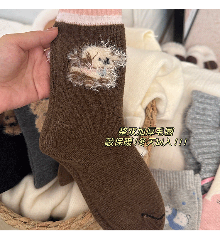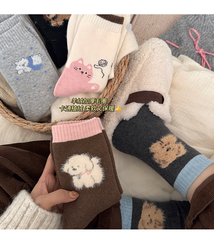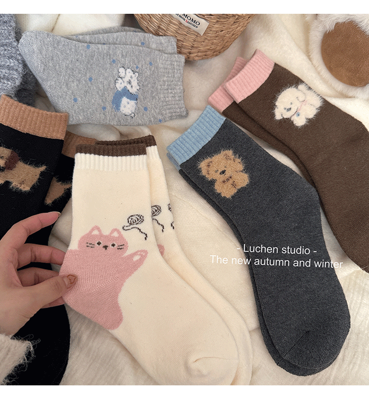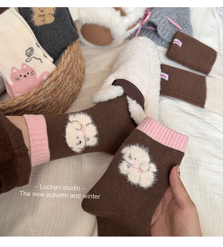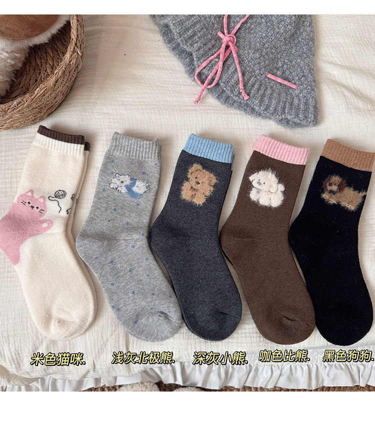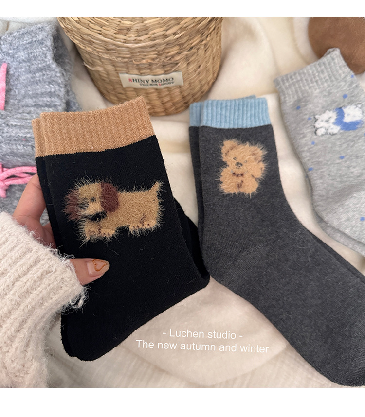 두꺼운 노크 "만화 양모 양말 어린이 중추와 겨울 두꺼운 기모 개 캐시미어 팩 양말스토어 가기