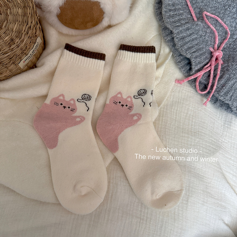두꺼운 노크 "만화 양모 양말 어린이 중추와 겨울 두꺼운 기모 개 캐시미어 팩 양말
