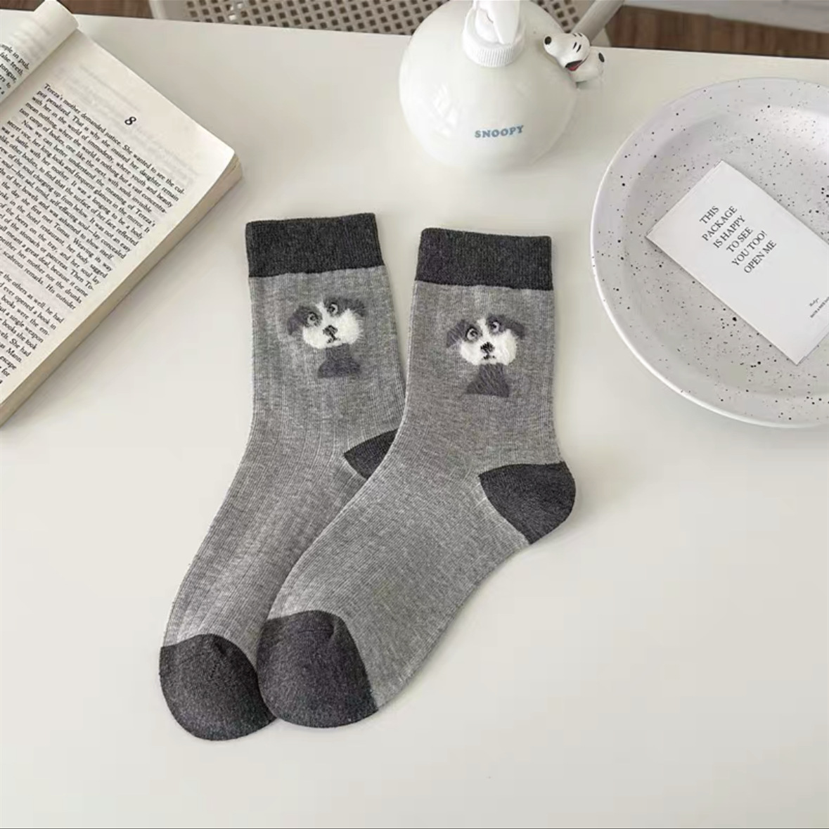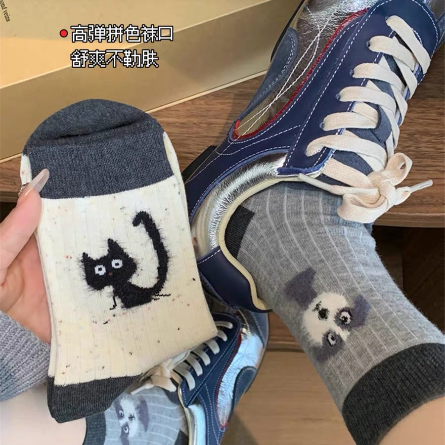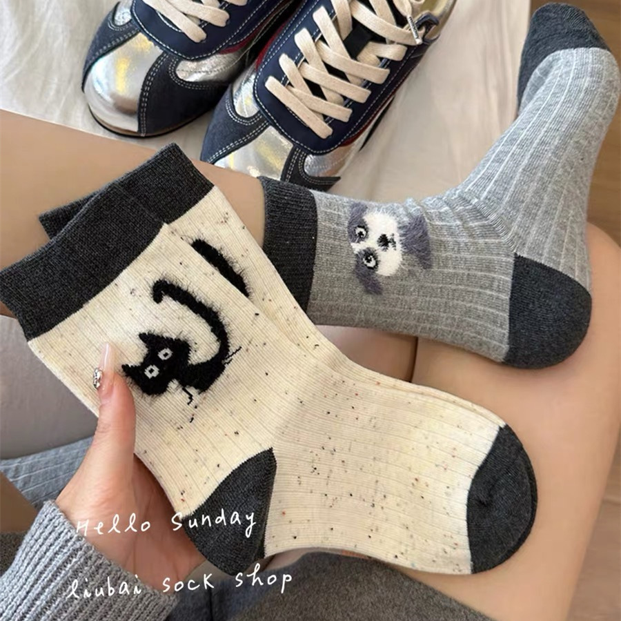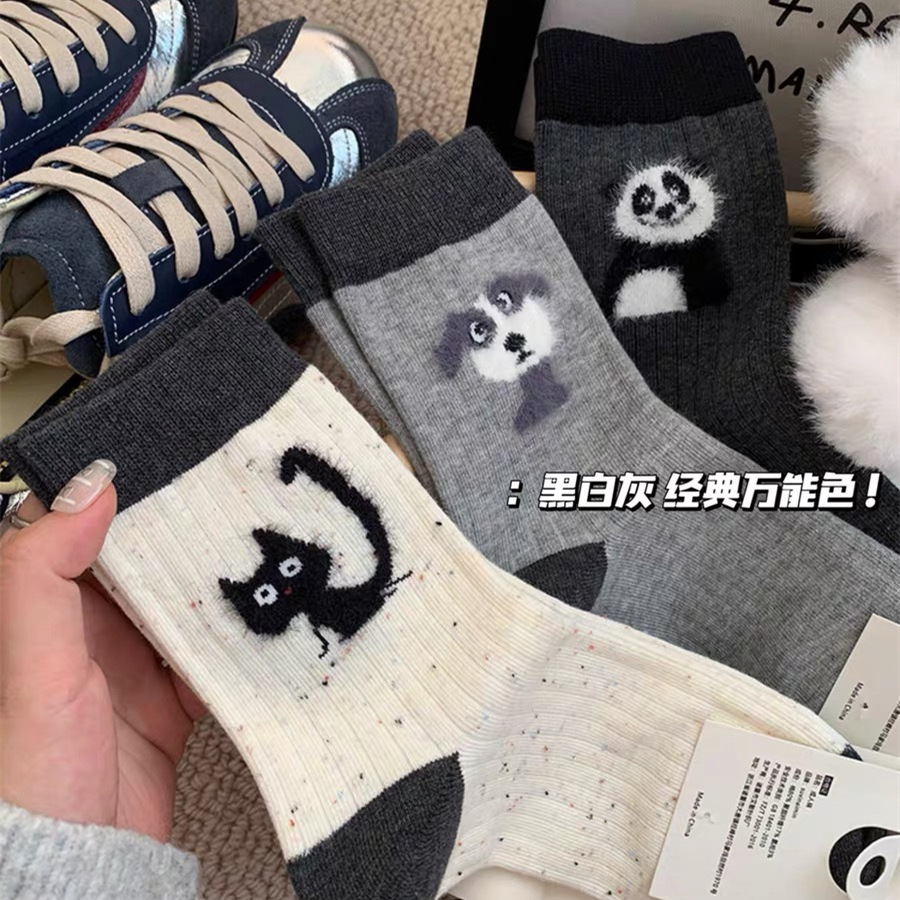 만화 포인트 원사 양말 여성의 중간 길이 양말 가을과 겨울 면화 양말 Ins 트렌디 한 플러시 봄과 가을 귀여운 스타킹스토어 가기