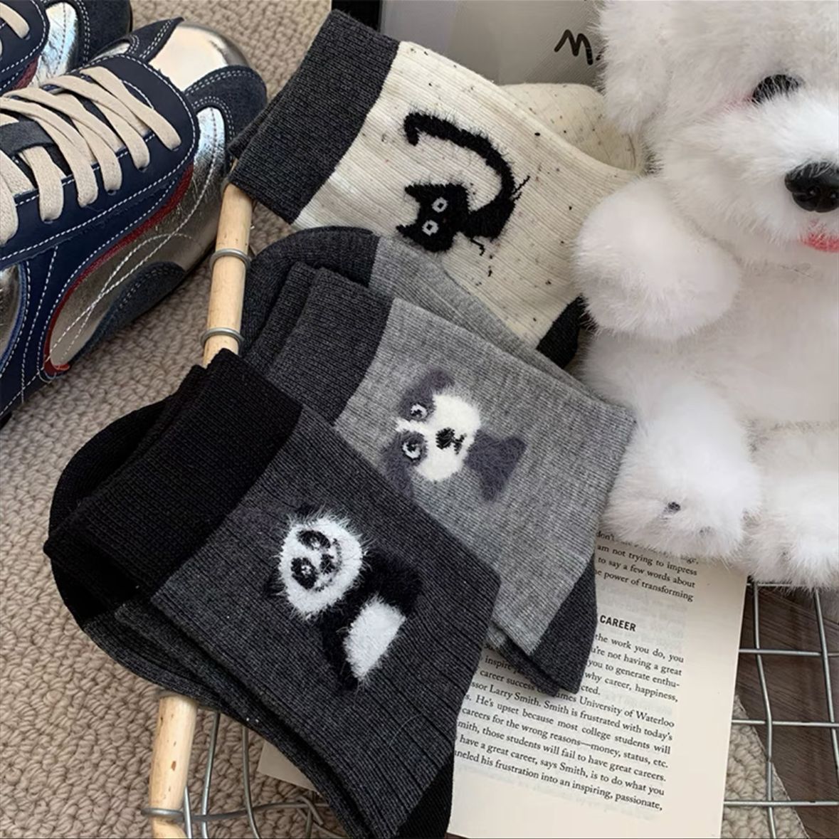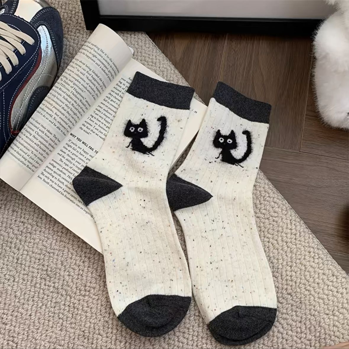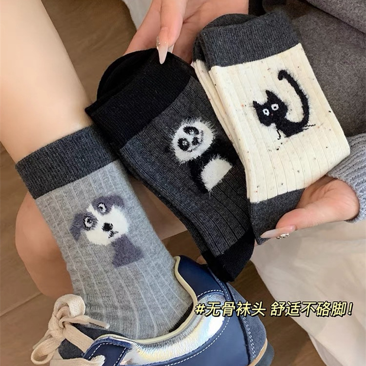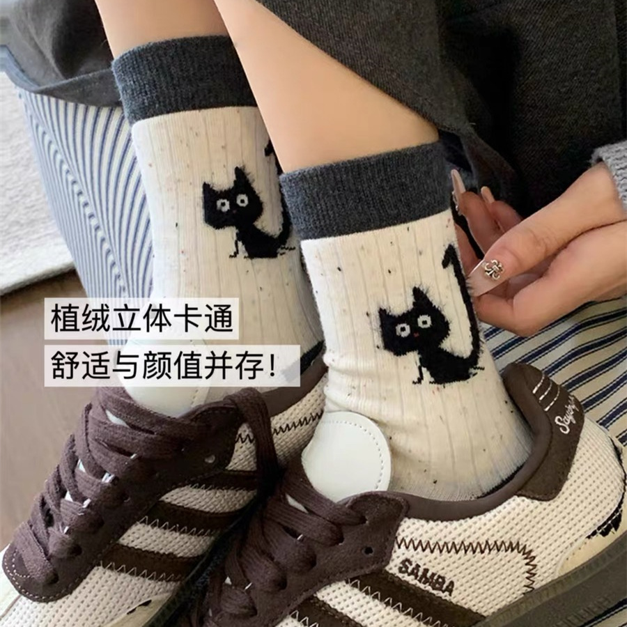 만화 포인트 원사 양말 여성의 중간 길이 양말 가을과 겨울 면화 양말 Ins 트렌디 한 플러시 봄과 가을 귀여운 스타킹
