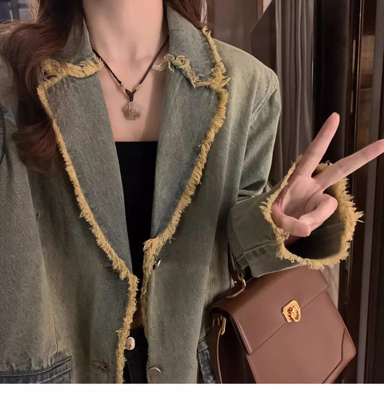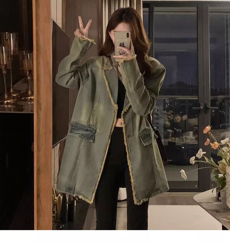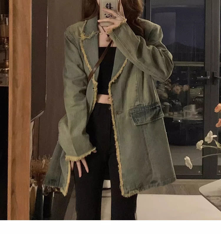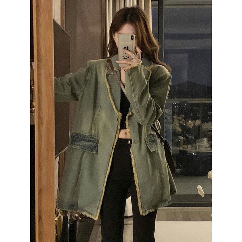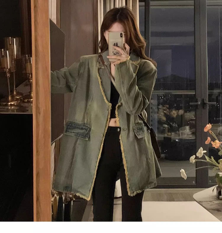 小香风牛仔西装外套女早春秋2024年新款百搭小众中长款风衣