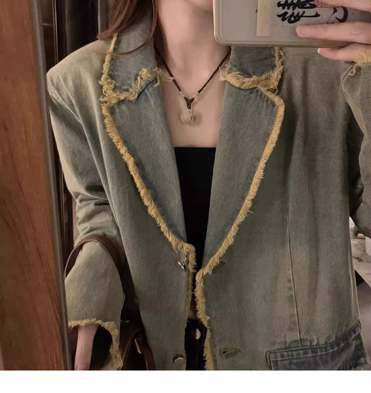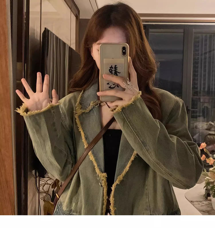 Xiaoxiang 데님 세트 재킷 여성의 초봄 및 가을 2024 새로운 디자인 감각 틈새 올 매치 재킷 탑