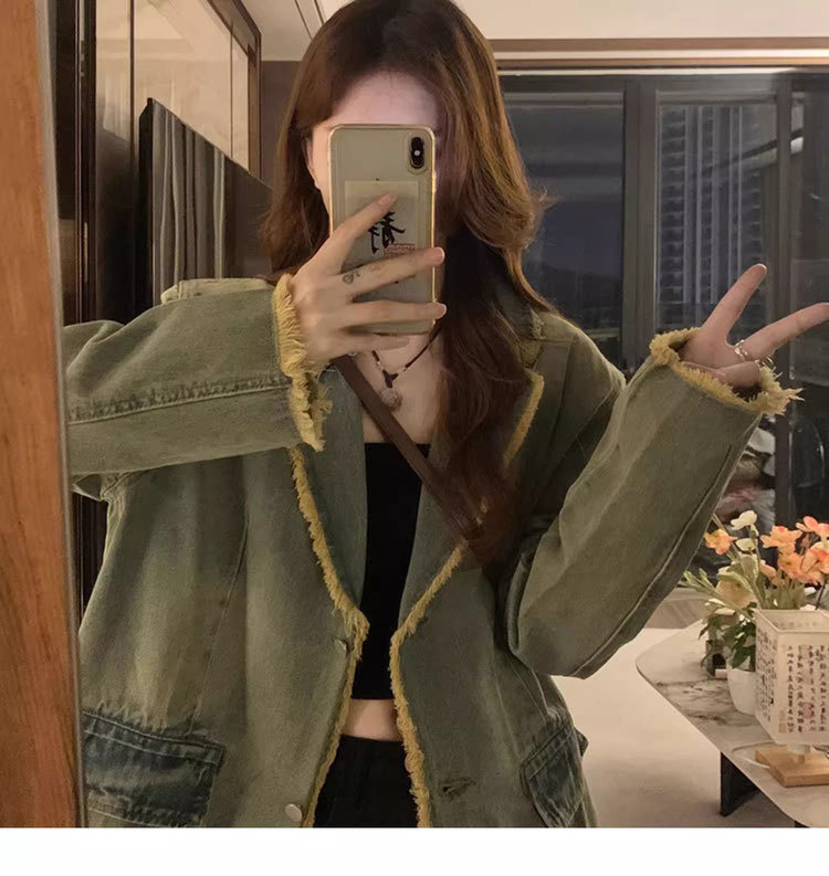 Xiaoxiang 데님 세트 재킷 여성의 초봄 및 가을 2024 새로운 디자인 감각 틈새 올 매치 재킷 탑스토어 가기