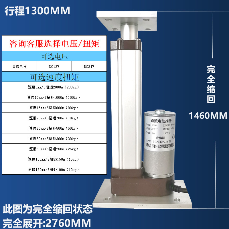 • DC12V-20MM/S-700N(70KG)-스트로크 1300MM(mm) 상단 플레이트 베이스 플레이트 포함