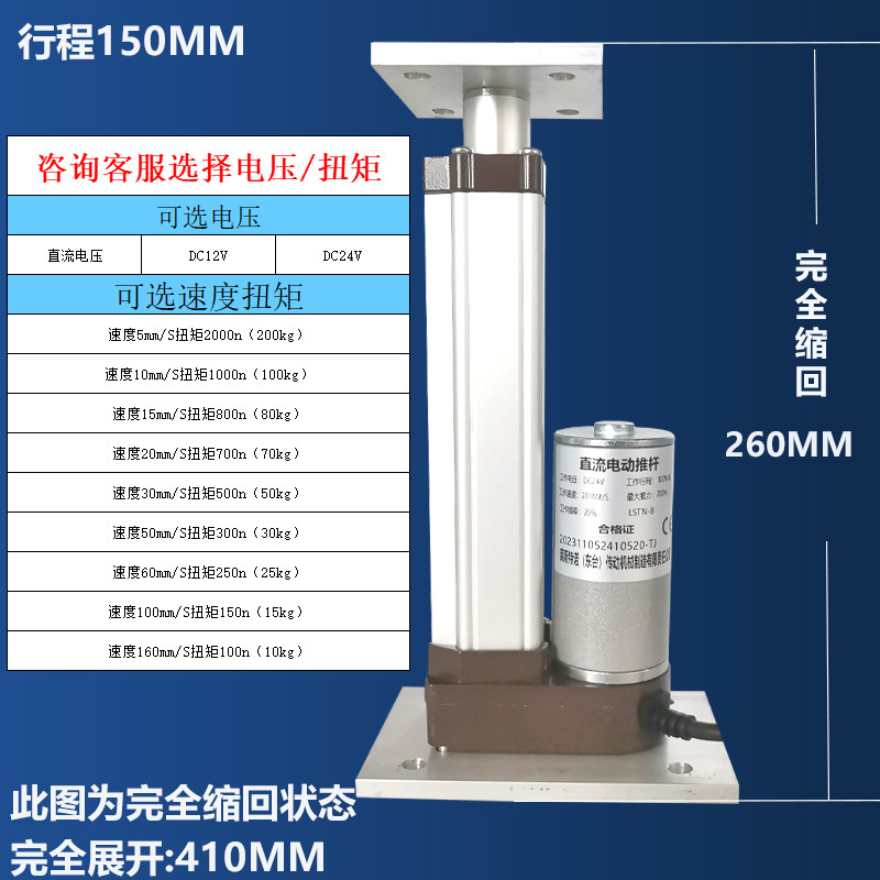 • DC12V-20MM/S-700N(70KG) - 상단 플레이트가 있는 스트로크 150MM(mm)