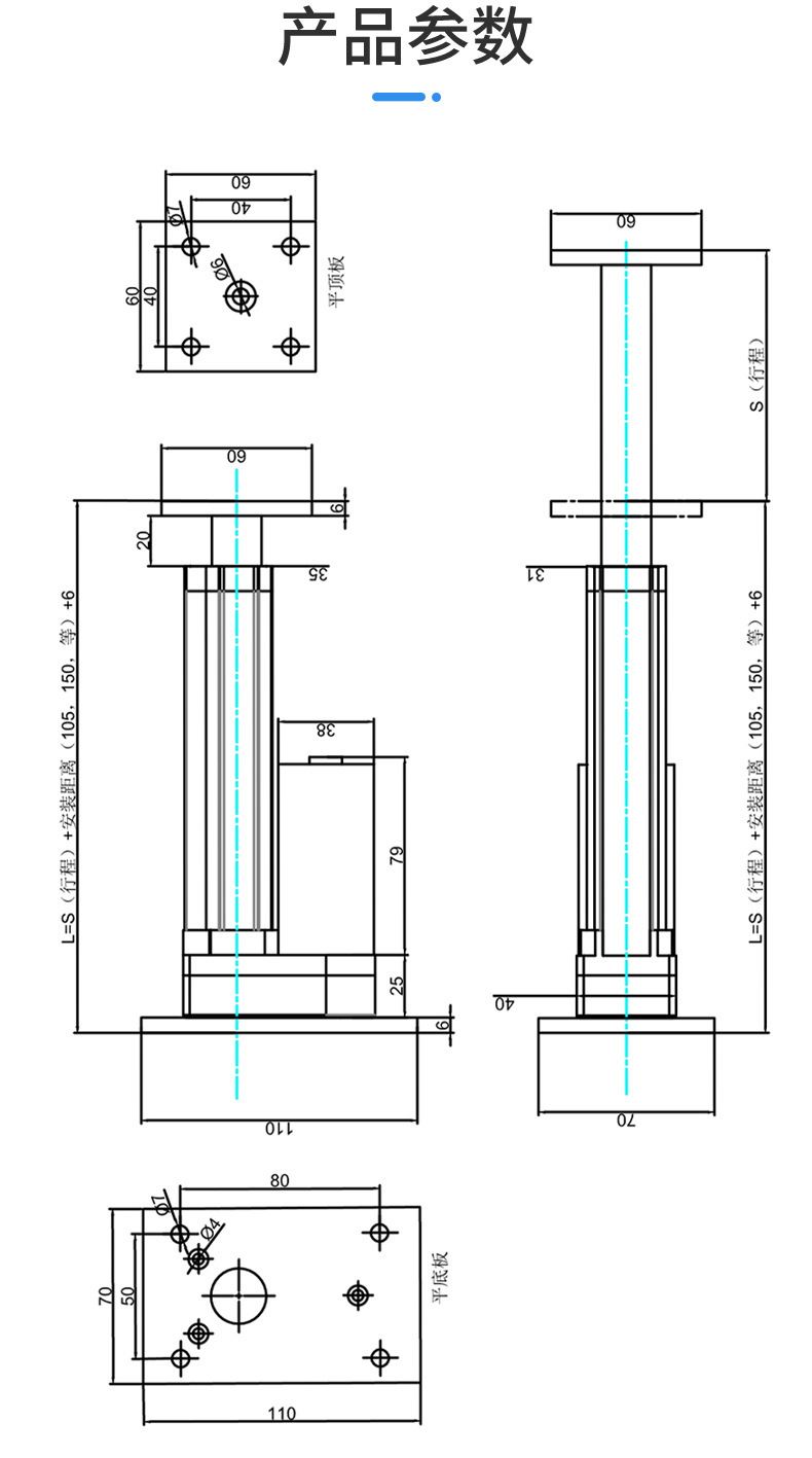 • DC12V-15MM/S-800N(80KG)-스트로크 1100MM(mm) 상단 플레이트 베이스 플레이트 포함