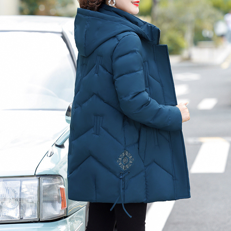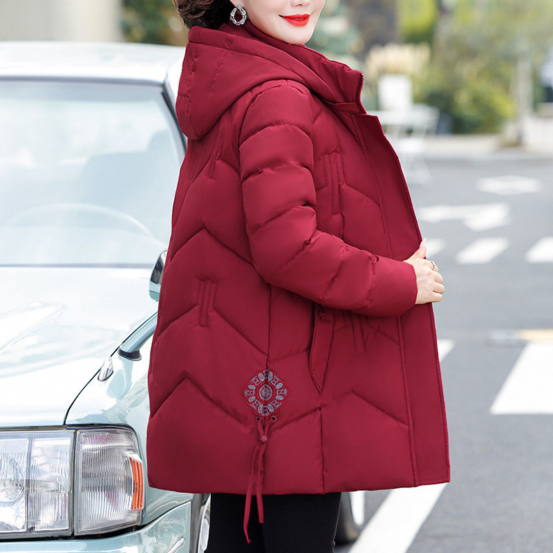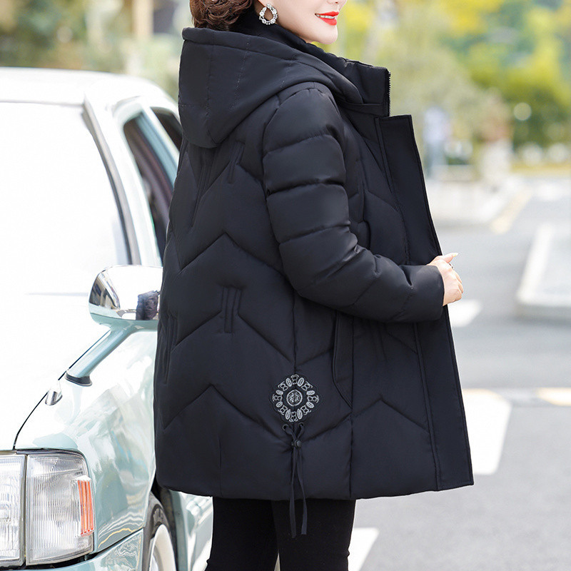 중년 및 노인 다운 코튼 패딩 재킷 여성의 중년 및 긴 겨울 수 놓은 면화 패딩 재킷 어머니 의상과 지방 플러스 사이즈 200kg 코트스토어 가기