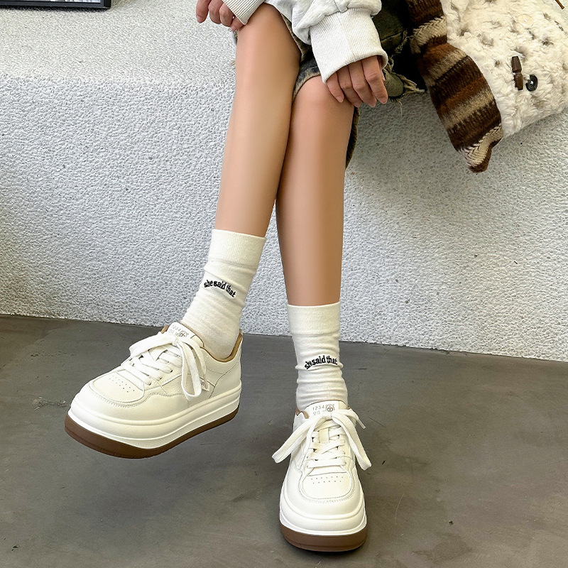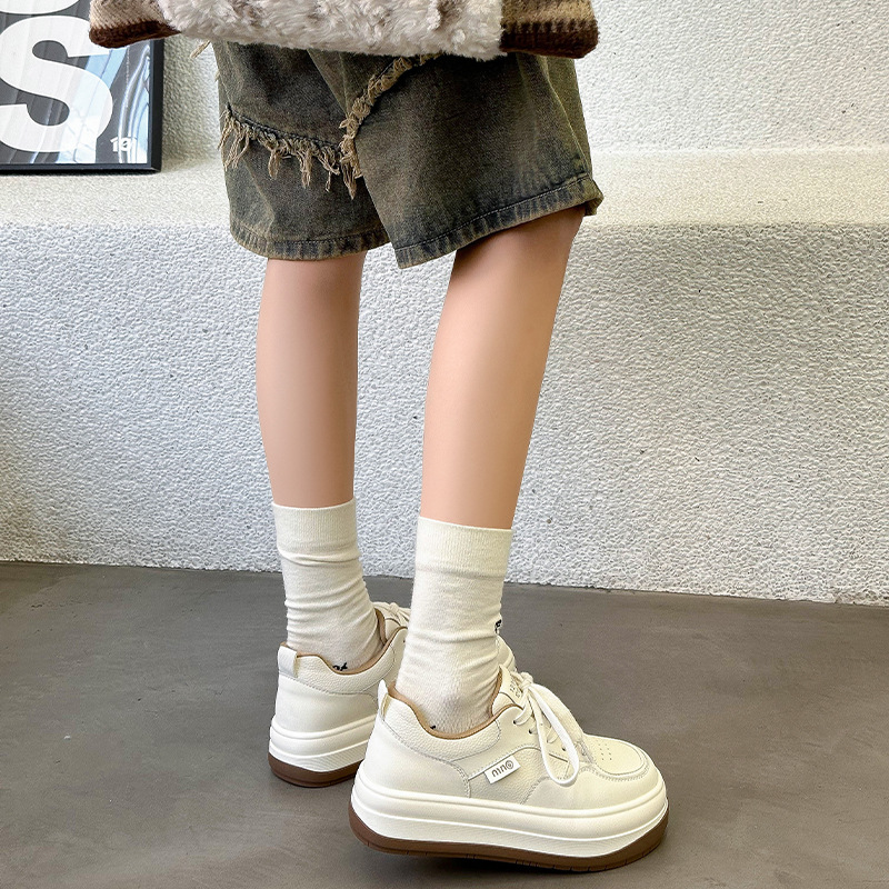 울트라 라이트 소프트 솔 올 매치 화이트 슈즈 여성의 2024 가을 새 두꺼운 단독 경량 싱글 레이어 슈즈 정품 가죽 캐주얼 스포츠 스니커즈스토어 가기