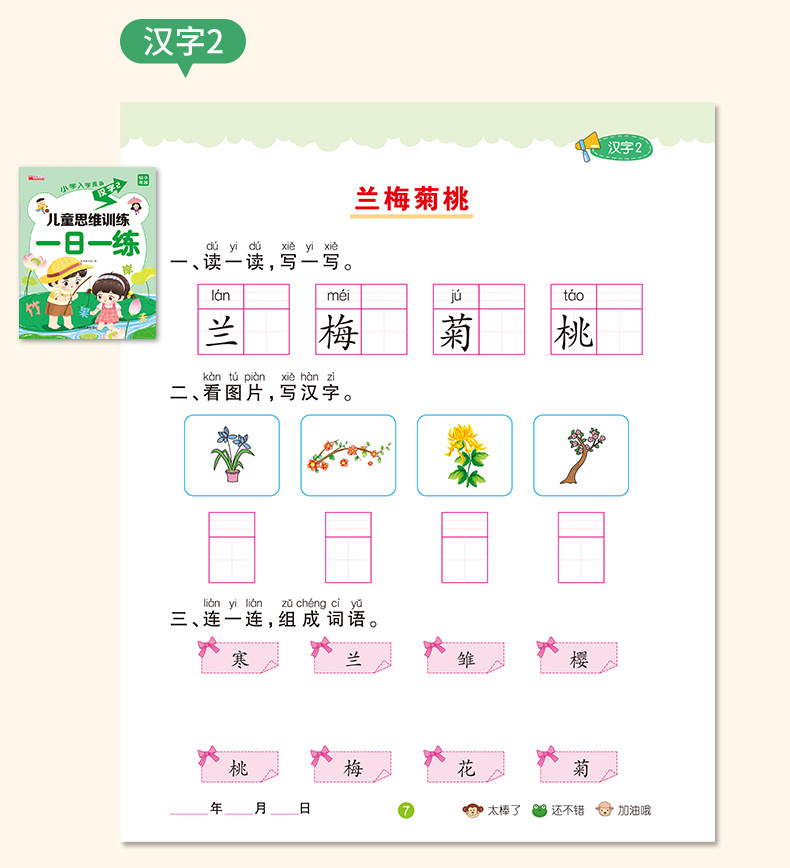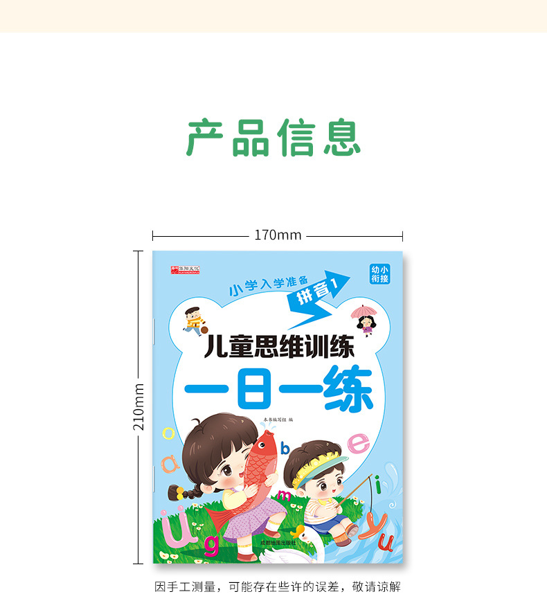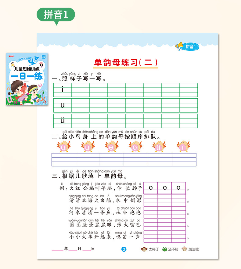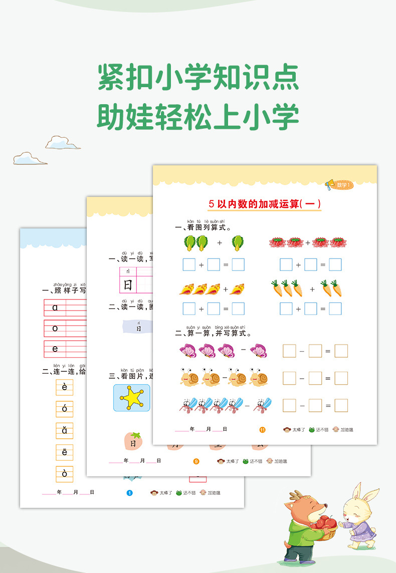 어린 아이들을위한 교재, 유치원에서의 대규모 수업, 초등학교의 병음 수학 및 한자 특별 운동 서적의 1 일 연습