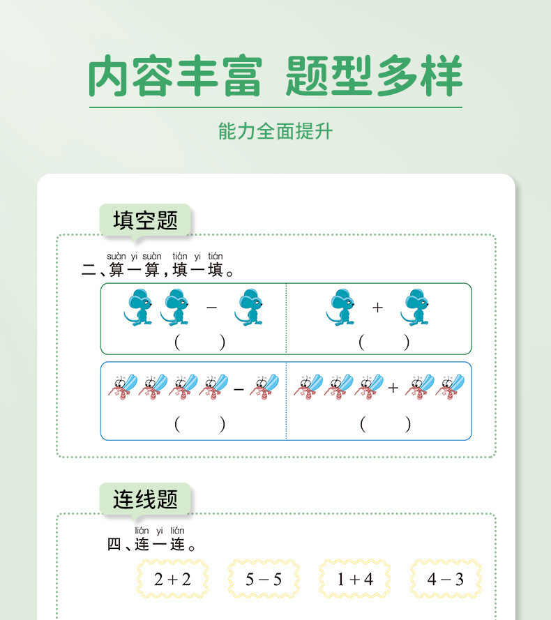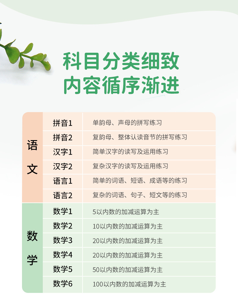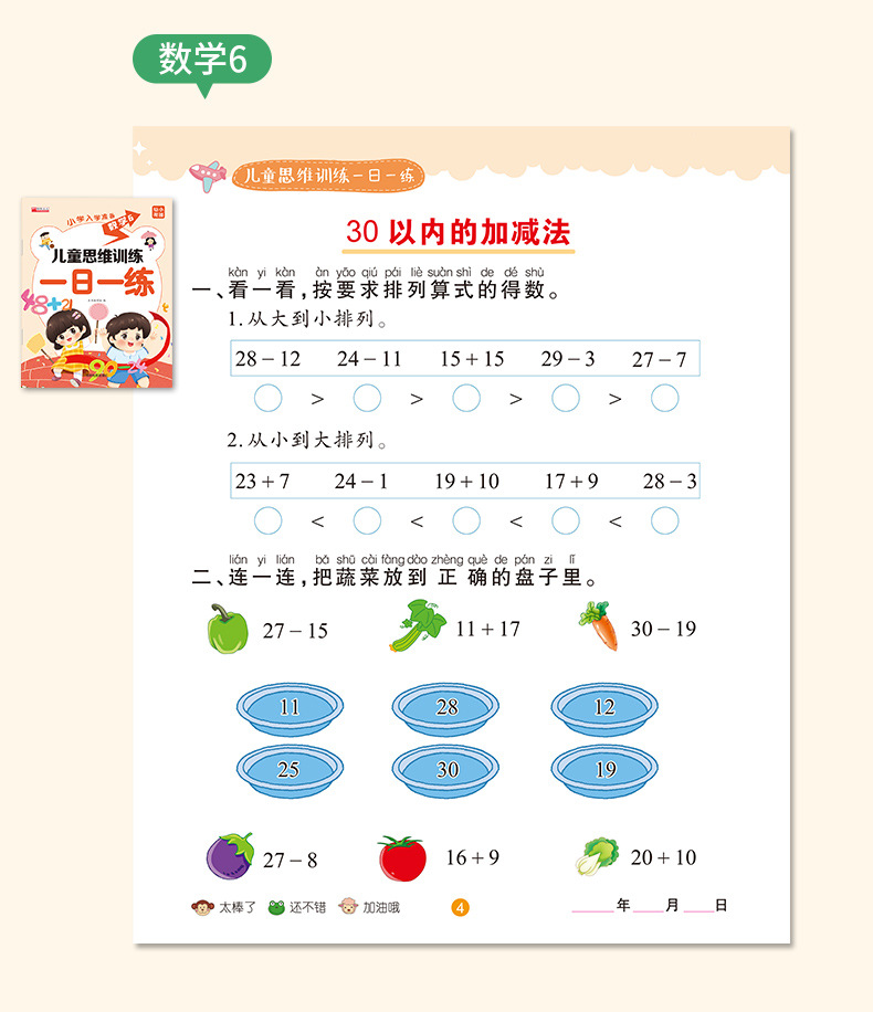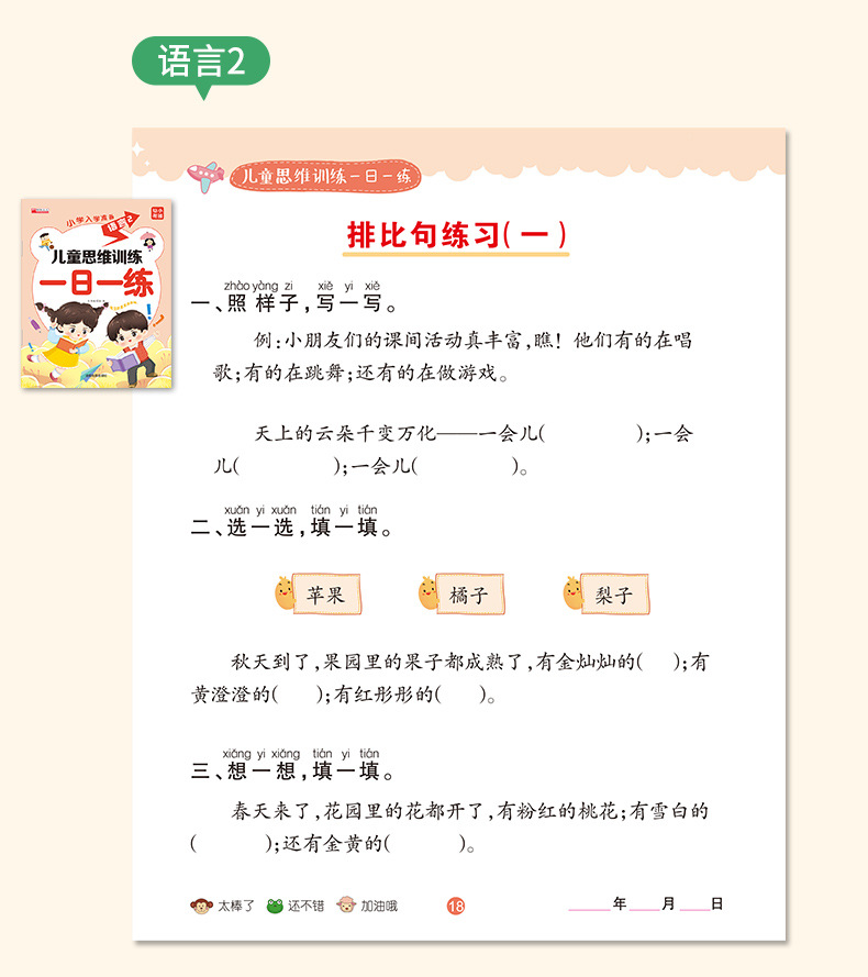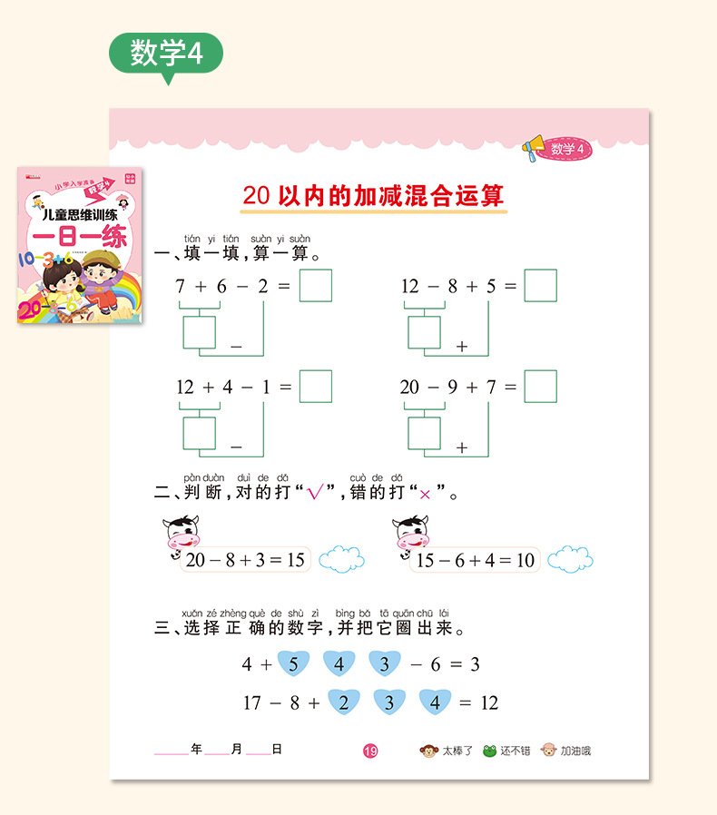 어린 아이들을위한 교재, 유치원에서의 대규모 수업, 초등학교의 병음 수학 및 한자 특별 운동 서적의 1 일 연습
